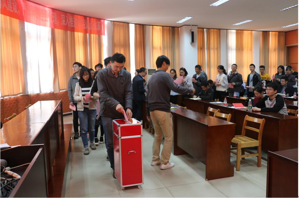 本次会议由地公司党委书记王甫主持。大会第一项,王甫向参会人员报告了到会情况,满足开会人数要求,全体起立,齐唱国歌。第二项,王甫向各位参会党员介绍了公司十二次党代会代表选举的相关要求,以及地公司各支部推选出的十二位党代表候选人预备人选的基本情况。随后各位进行了庄严的投票仪式,各位党员根据自己的选择投下神圣的一票。现场计票后,地公司选出了赖旭龙、王甫、刘勇胜等十位同志作为正式代表参加公司的第十二次党代会。