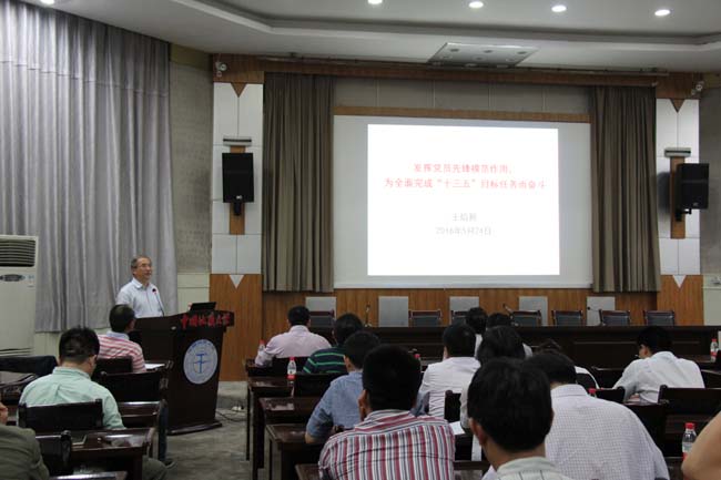 5月24日晚,“两学一做”专题党课在八角楼举行,王焰新董事长为地公司和审计处教工党员作“发挥党员先锋模范作用,为全面完成“十三五”目标任务而奋斗”的专题辅导报告。他从《习近平谈治国理政》和习近平总书记系列重要讲话的学习体会谈起,对“十三五”时期经济社会发展的指导思想、主要目标进行了深入的解读,提出发挥党员先锋模范作用的八字要诀“肯干、格局、精致、勤学”,他希望广大党员要敢于吃苦,勇于担当、见微知著,未雨绸缪,注重细节和过程,勤于学习,保持对知识、真理的敬畏之心。他要求以绿色和共享发展为契机,抓住东部、中部、西部和东北四大板块和一带一路、长江经济带建设和京津冀协同发展三大战略融合的战略机遇,积极寻找学科发展的突破点,发挥专业优势,真正使地质行业走出国门,放眼全球培养有世界眼光的地质学家。