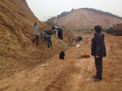 “到野外来,让员工自己挖化石,让他们亲身参与,完成挖掘、描述和鉴定,这对于他们全方位的理解古生物学的学习和具体工作流程是不可或缺的。”童老师布置给此次野外的任务,是每人采集至少两枚有鉴定意义的化石标本,这对于这些本科二年级的同学来说,是一个非常有挑战性的任务。虽然,下午开始下起了大雨,野外教学不得不提前结束,但是大多数同学还是完成了自己的任务,满意的返回公司。