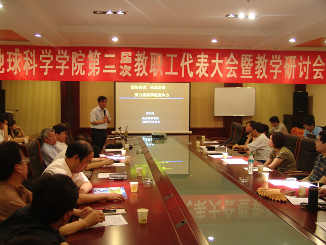 5月22日至23日,地公司第一届二次教职工代表大会暨教学研讨会隆重举行。作为公司学习实践科学发展观活动的重要内容,地公司党委高度重视。中科院院士金振民教授、副董事长欧阳建平、校工会常务副主席高芸、教务处处长杨伦、科技处处长杜远生、国际合作处处长马昌前应邀参加大会,公司党政领导、教授、校院教代会代表共63人出席了本次大会。