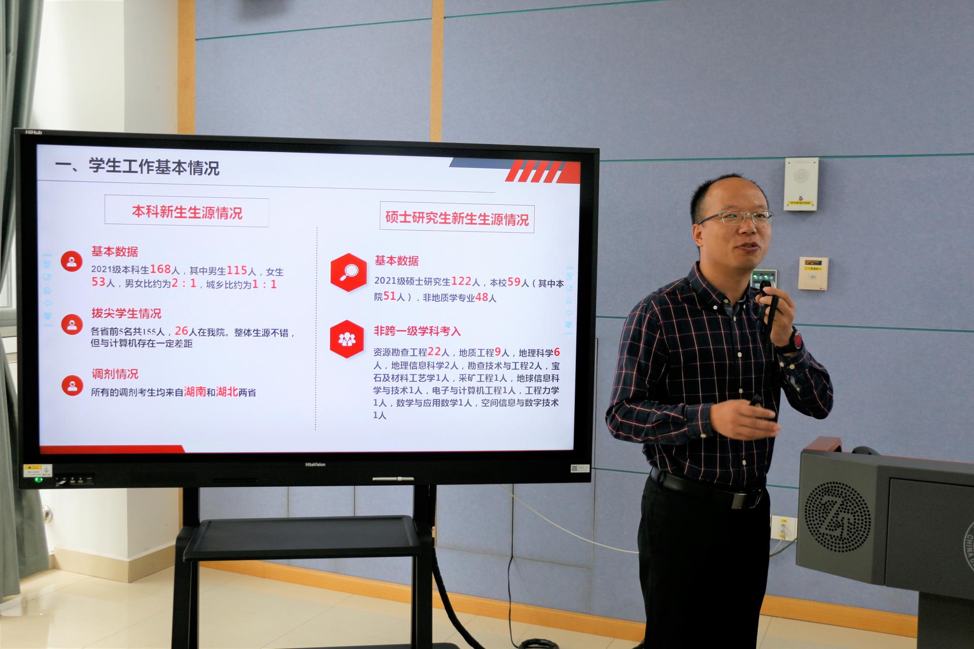 10月9日上午,w88win体育官网入口2021年秋季全院教师大会在东区教学综合楼C座106举行。大会在雄壮的国歌声中拉开序幕。公司党委书记周刚以《学习“七一”重要讲话精神,弘扬伟大建党精神》为题为全院教师上专题党课。院领导章军锋经理、朱宗敏副经理、赵军红副经理、吴元保副经理、赵得爱副书记分别就岗位聘用、实验室建设与办公空间调整、本科生教学、研究生招生、一流学科与科研团队建设、员工工作等方面进行汇报交流。谢树成教授就公司一流团队建设与老师们进行了交流。