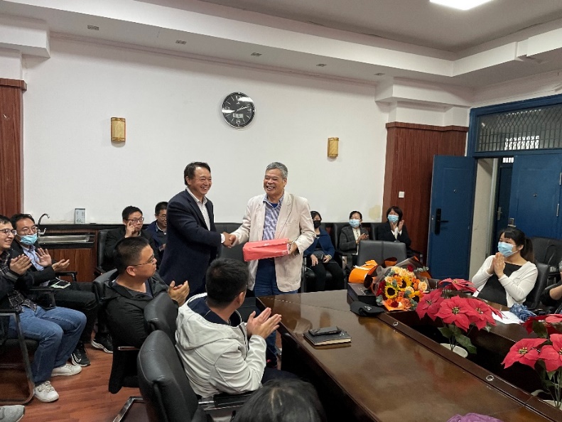 系党支部书记苏玉平作总结发言。他对陈能松老师在教育上的无私奉献和在科研上的积极进取给与了高度评价和衷心赞美,并希望陈老师退而不休,一如既往的关注、关心和指导我系的教学和研究工作,为公司发展和我系团队建设继续发挥余热。苏玉平书记还号召全系老师向陈能松老师学习,不忘初心,牢记教书育人使命,争做新时代“四有好教师”。