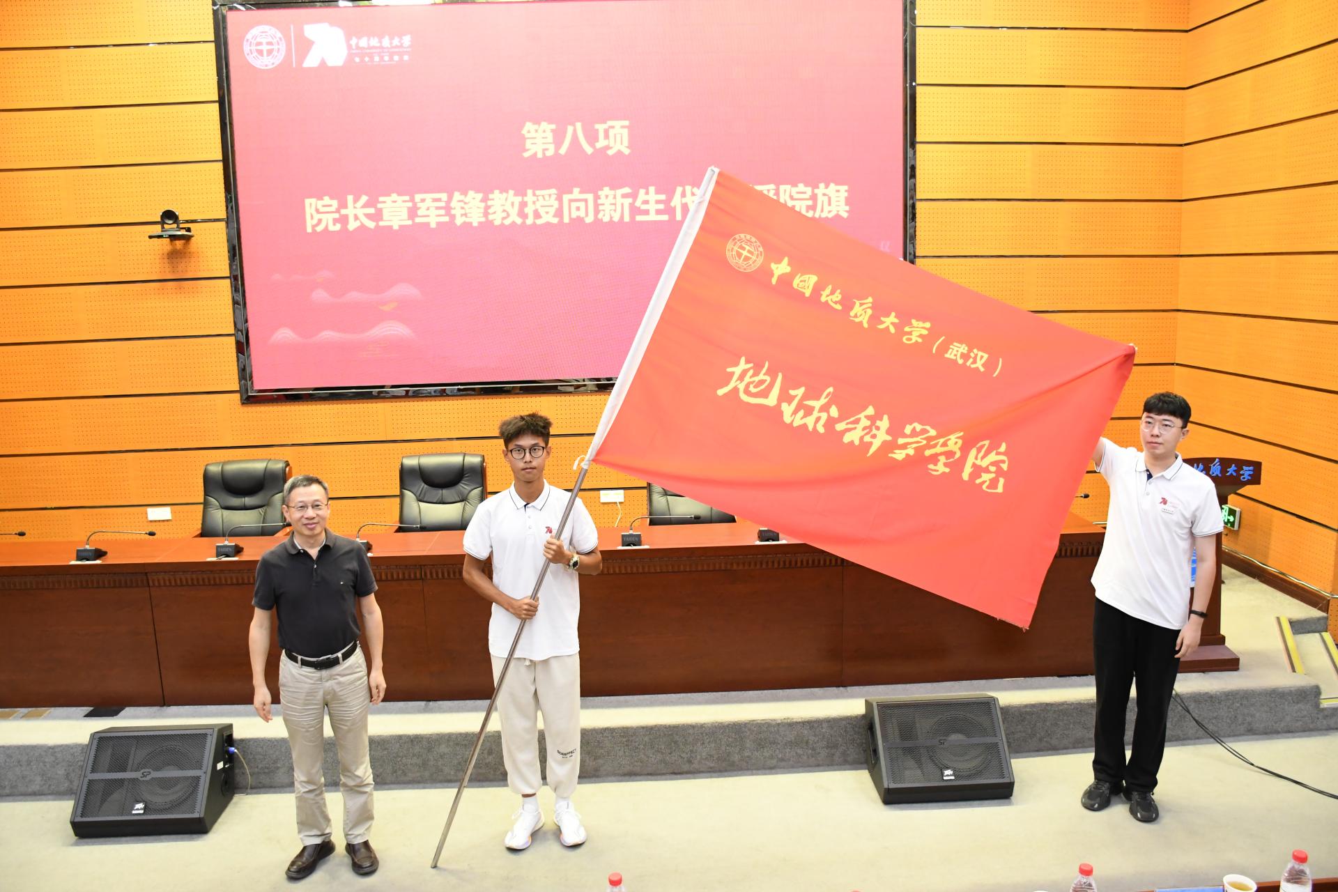 经理章军锋教授向新生代表授院旗