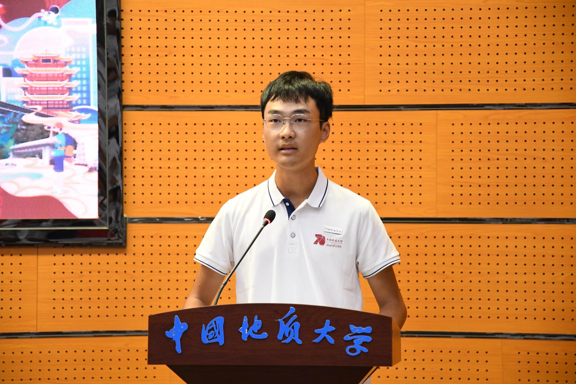 010222班的周东阳代表新生发言。本就对地质学有浓厚兴趣,并对于交叉学科有探索想法的他,在了解到地质学珠峰班恰好有类似培养方案时,毫不犹豫地将地质学作为第一志愿,立志在地质学的科研路途中,做出属于新一代地质人的突破。