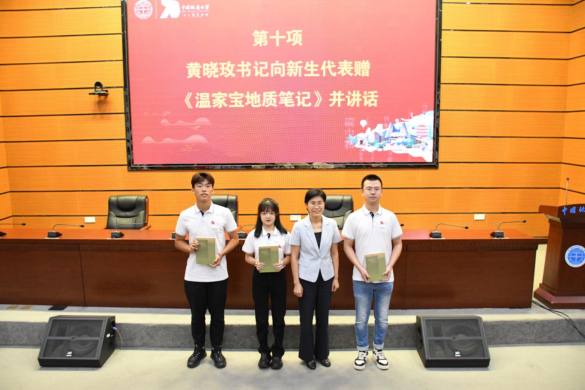 公司党委书记黄晓玫向新生代表赠《温家宝地质笔记》