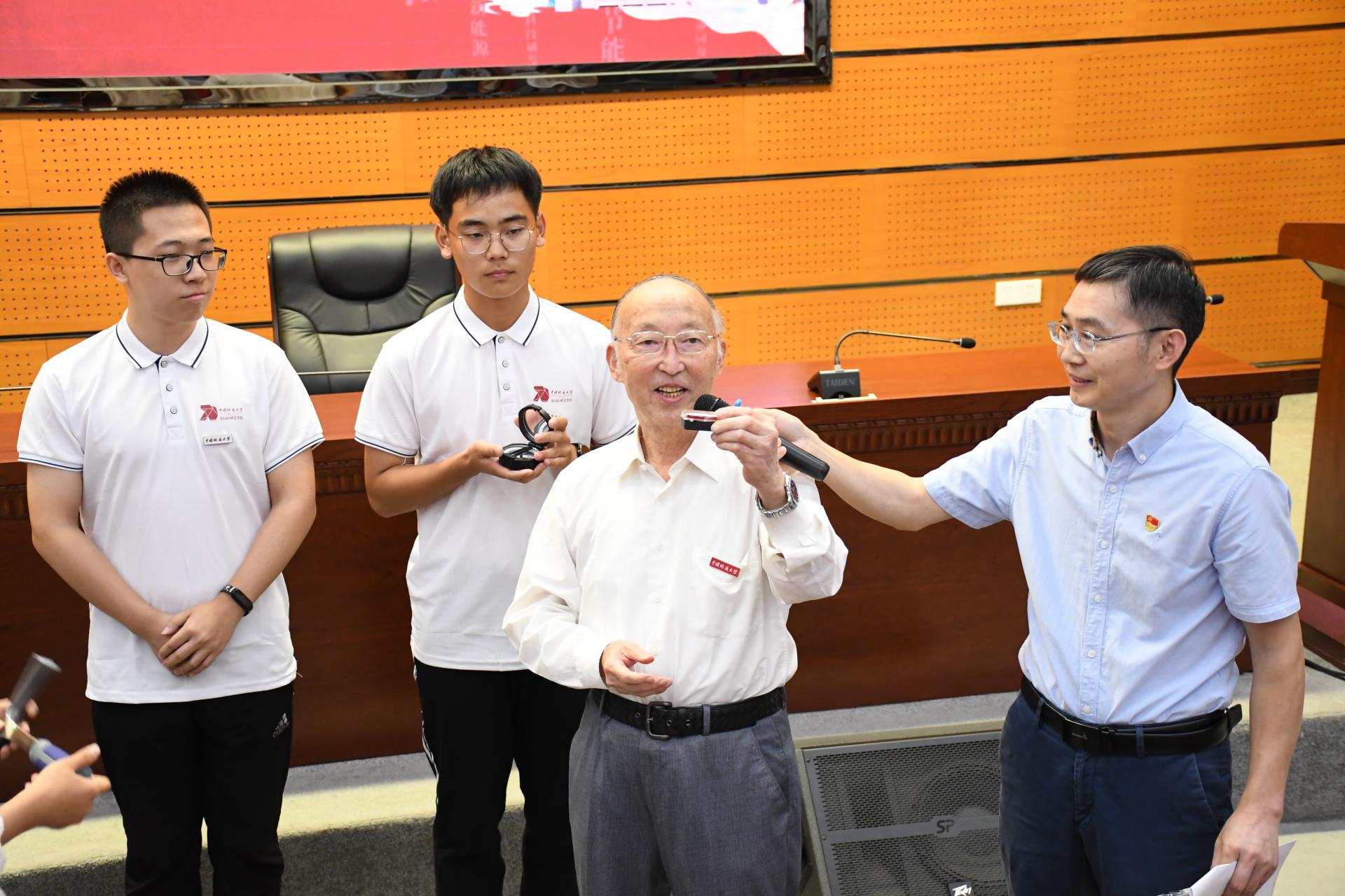 殷鸿福院士向新生代表授“三大件”与地质包