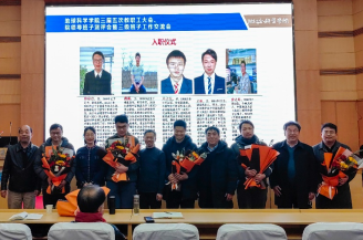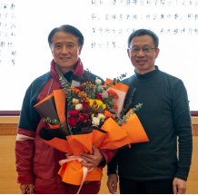 公司领导为荣休的龚一鸣教授(左)、新入职的五位老师献花(右)