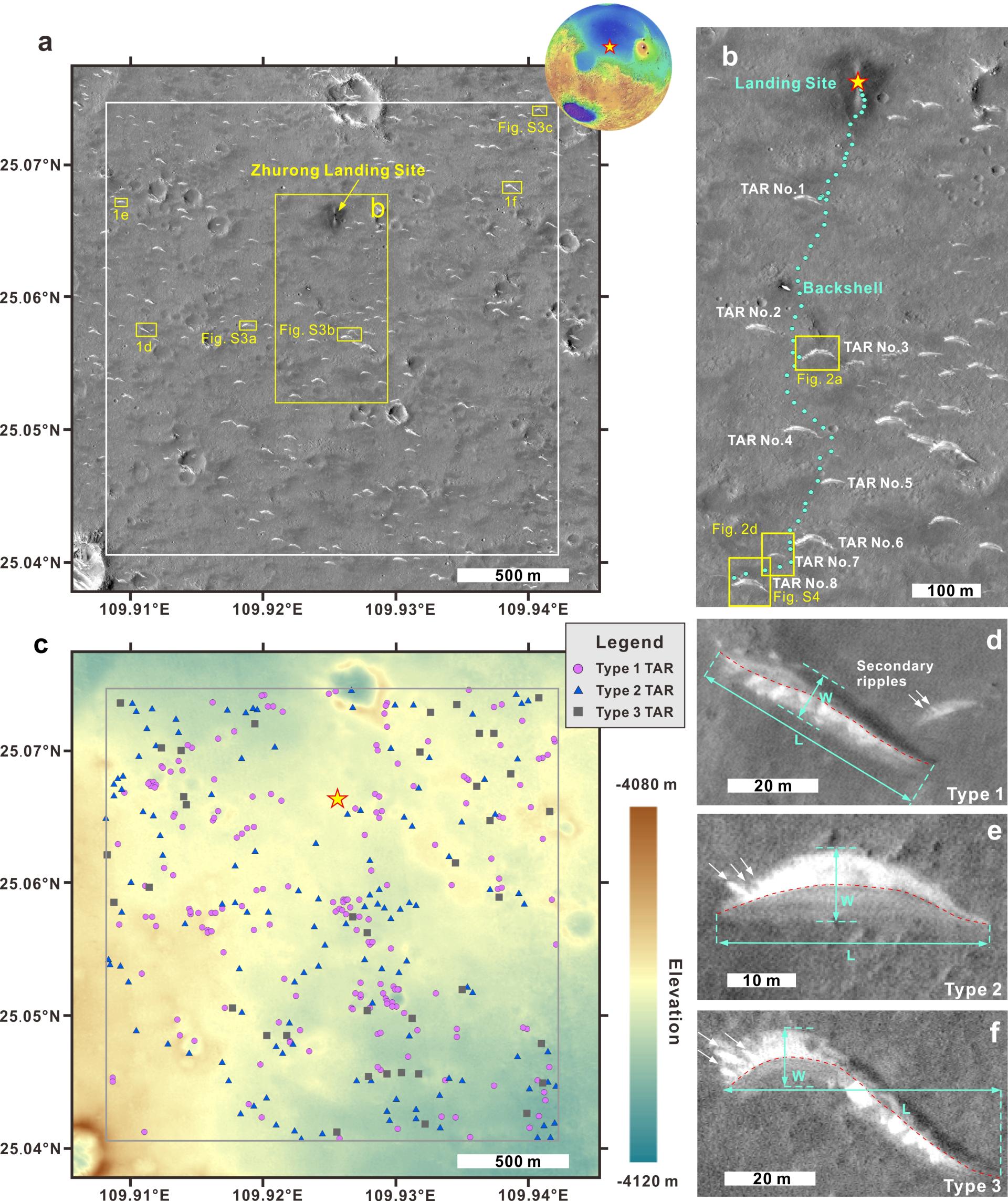 图1 “祝融号”着陆区TARs的类型与分布