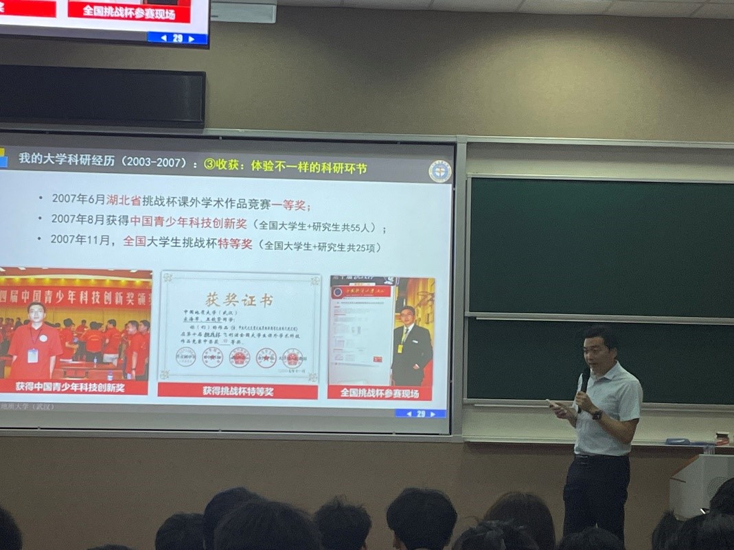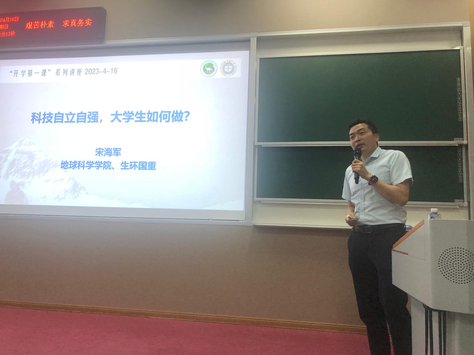 4月16日晚,第十七届“中国青年科技奖特别奖”获得者、w88win体育官网入口地球生物学系教授、生物地质与环境地质国家重点实验室副主任,“挑战杯”老员工课外学术科技竞赛优秀指导老师宋海军教授以“科技自立自强,老员工该如何做”为题,为公司2022级本科生带来了一场精彩的主题报告。