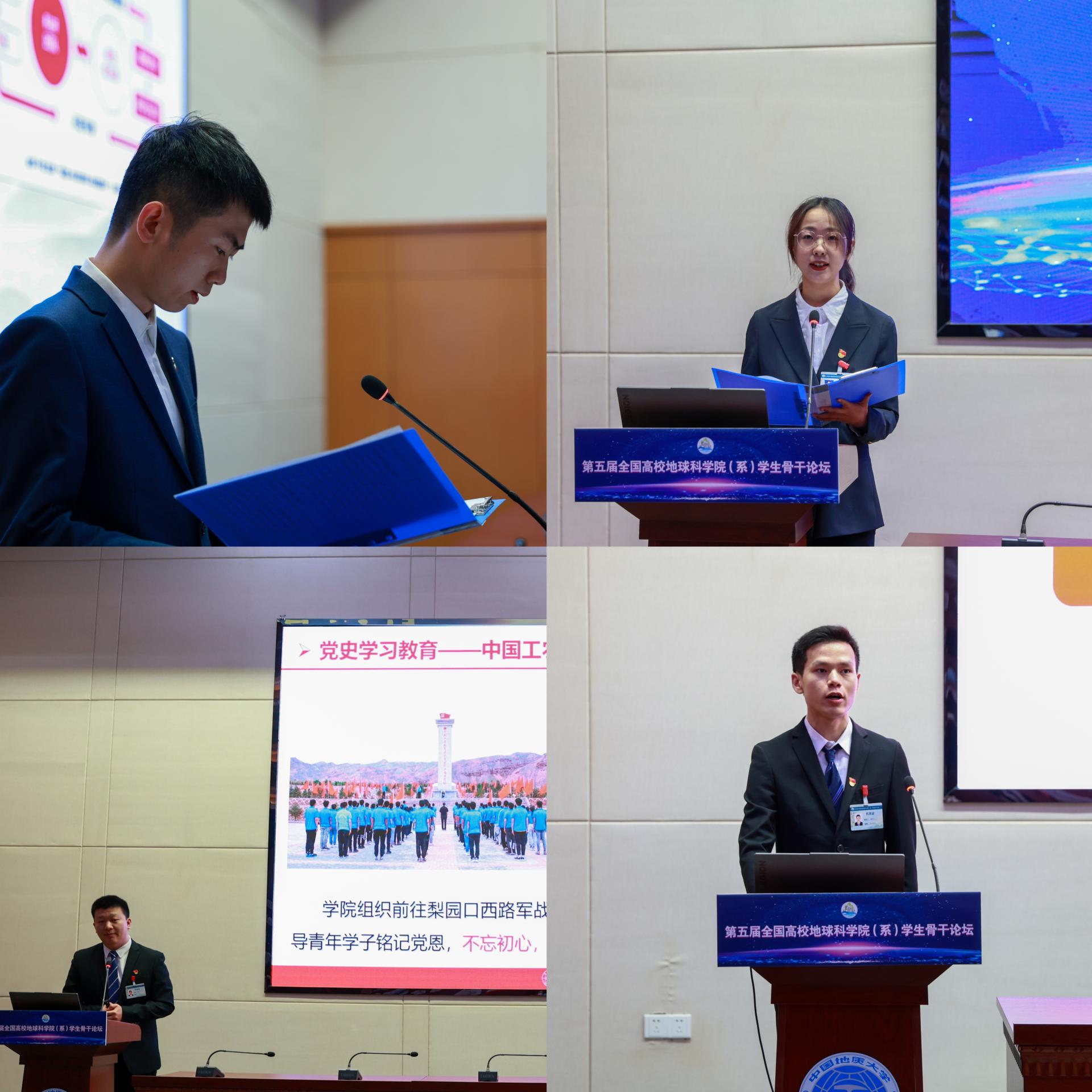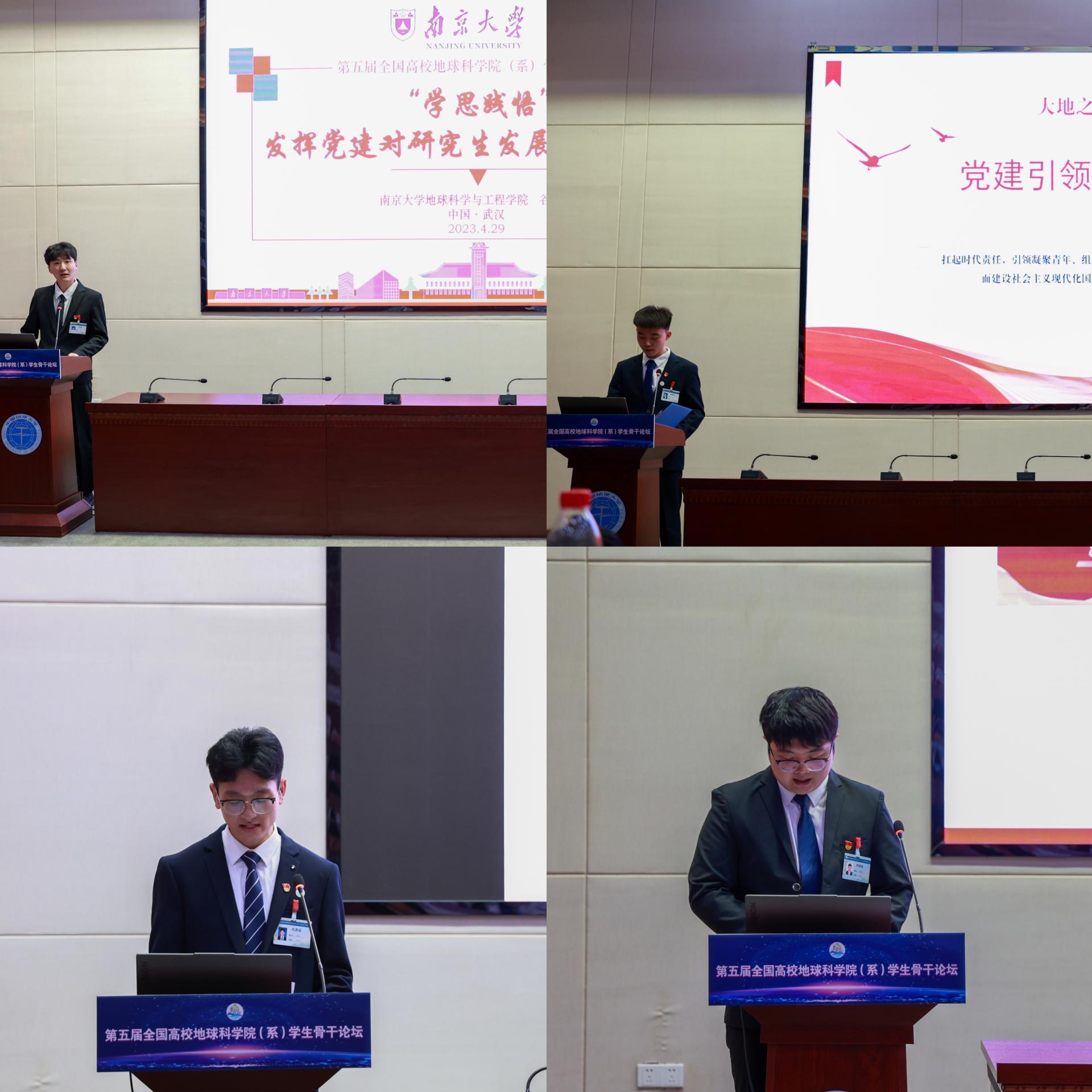 南京大学代表谷英东提出从“学而思、思而践、践而悟”三个层次,发挥党建对研究生发展的引领作用。山东科技大学代表冯凯介绍了所在的大地之光党支部牢记“地质三光荣”精神,致力于促进“党建+业务”协同发展的创新举措。天津大学代表张宇讲述了“坦坦荡荡做人,勤勤恳恳做事,严严谨谨做学问”的涂光帜教授,把自己的一生奉献给热爱的地球科学事业的故事。武汉大学代表刘文钦从扎实基本工作,激发学习热情,创新实践教育,打造测绘品牌等方面介绍了创新支部建设工作的举措。