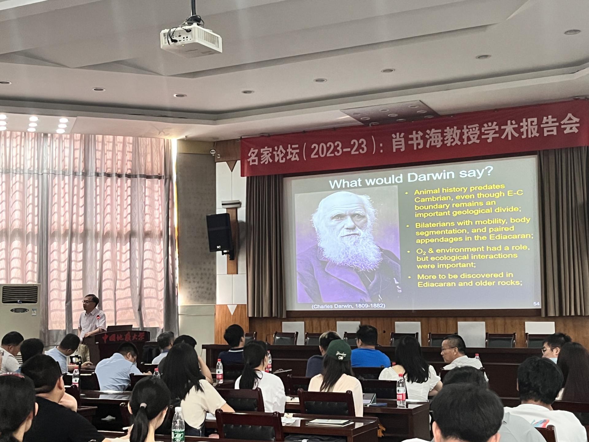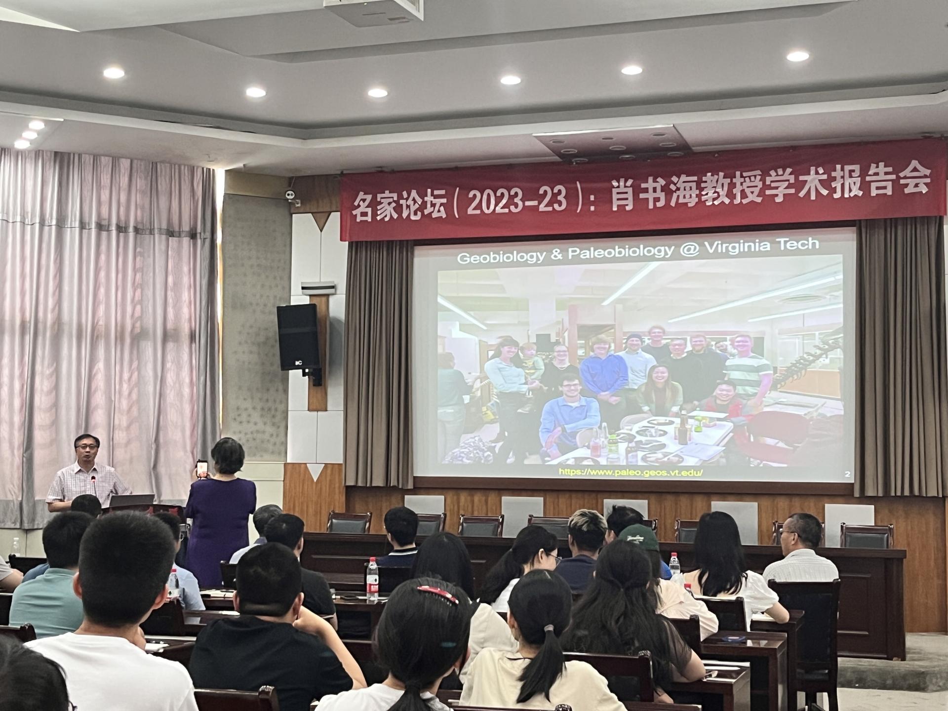 2023年6月9日下午,美国科公司院士、美国弗吉尼亚理工大学地球科学系肖书海教授应邀做客公司“名家论坛”,在南望山校区八角楼学术报告厅作题为“早期动物演化和达尔文的困惑”的学术报告。全校百余师生参会,高等研究院常务副经理章军锋教授主持报告会。