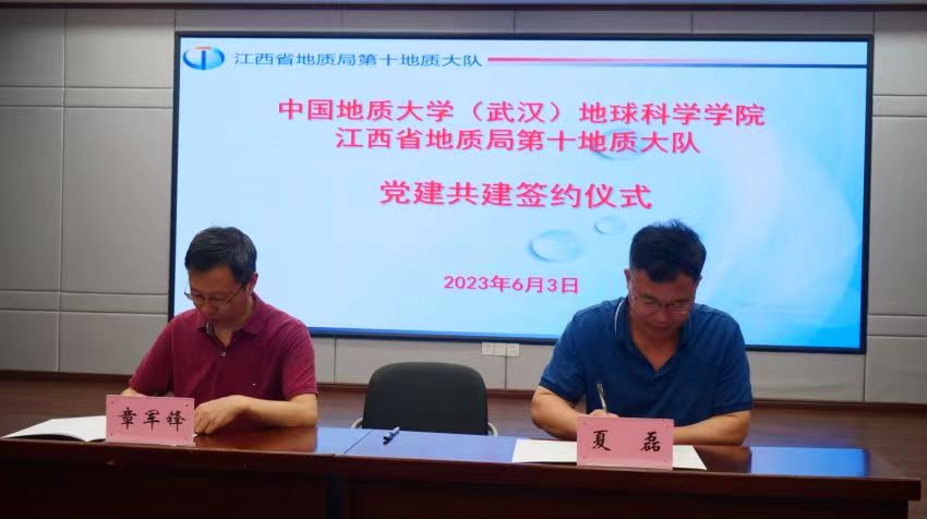 2023年6月3日,w88win体育官网入口经理章军锋、地质调查研究院总工王国灿以及构造地质与地球动力学系一行24人赴江西省地质局第十地质大队开展 “访企拓岗”活动。上午,江西省地质局第十地质大队队长吴美仁、队副总工程师兼自然资源调查院经理欧阳永棚等陪同考察了江西省浮梁县朱溪钨铜矿区。下午,在第十地质大队举行党建和产学研合作签约仪式。第十地质大队队长吴美仁、党委书记夏磊和副总工程师兼自然资源调查院经理欧阳永棚等出席了合作座谈会和签约仪式。