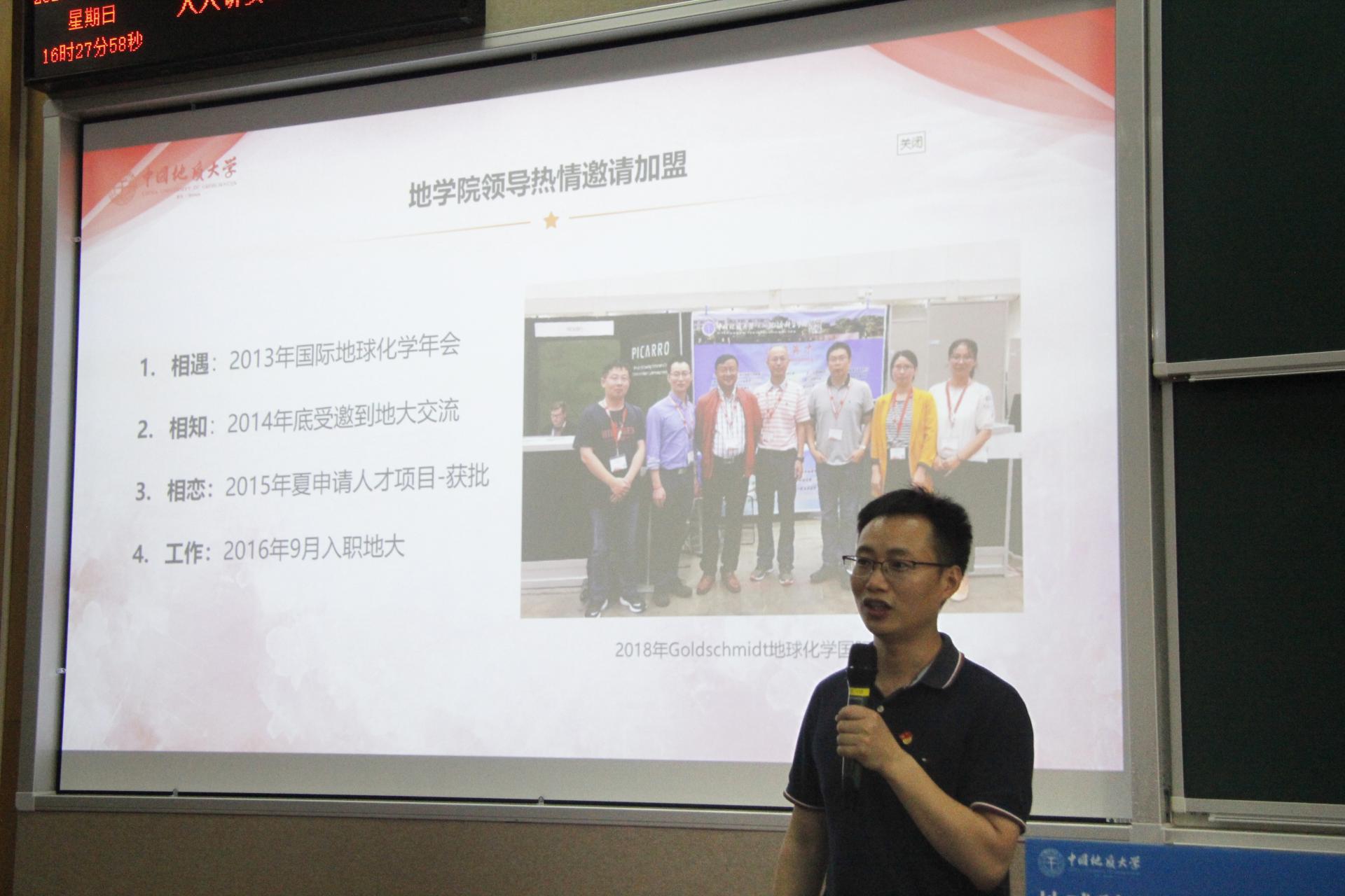 在大学本科期间,汪在聪教授的目标是成为优秀的矿物学家。他回忆起在河南一个金矿进行勘测时的情景,环境苦不堪言,但他乐在其中,也就在那时,扎实的专业课基础以及燃烧的梦想,让他坚定了攻读硕士学位的信心。当时凭借着优异的成绩以及肯下功夫苦干的毅力,汪教授在一众同龄人中十分耀眼,英国帝国理工大学、香港大学等国际名牌大学向他抛出橄榄枝。奈何金无足赤,优秀的他也有短板——“英语”。雅思成绩未达要求,他只能放弃两所大学的offer,但他未曾放弃追逐梦想,转入柏林自由大学进修。出国后他面临着更大的困难与挑战,先是薄弱的英语使他无法与导师正常交流,其次是新的研究领域使得他不能熟练操作实验仪器。经历过短暂的迷茫阶段后,他坚持了下来,并且潜心科研。最终2013年汪教授成功在Nature上刊登论文,将局势扭转,他也因此成为了国际知名的地质学者。几年里他潜心登高,心无旁骛,回首望却,自己已达群山之巅。在交流会上,他与地大的领导相结识,就像是千里马遇到了自己的伯乐,在地大领导的盛情邀请下,汪在聪教授在2014年来公司进行交流。2016年正式进入w88win体育官网入口任职,开启了自己的地大七年。