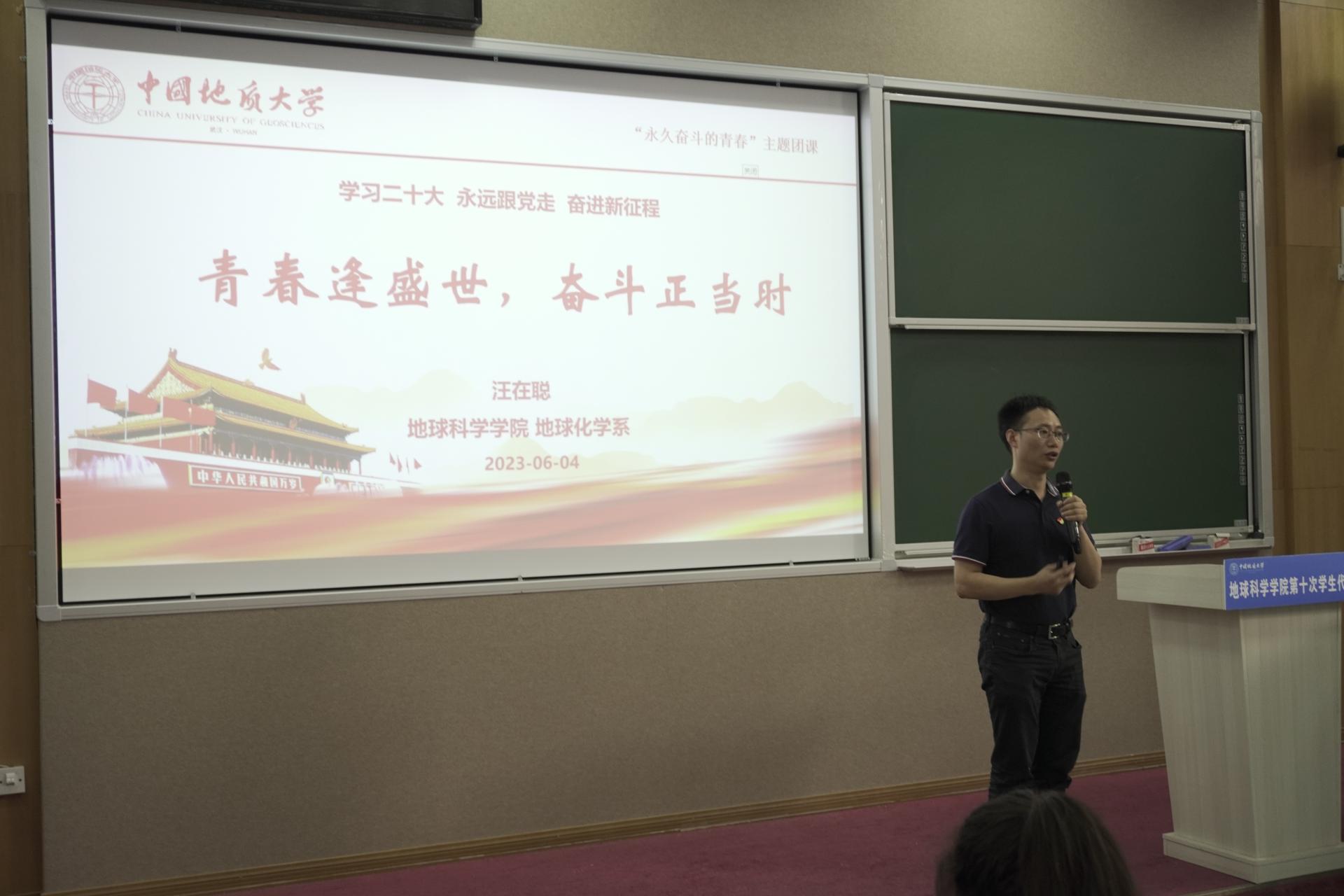 汪在聪教授以“青春逢盛世,奋斗正当时”为主题分享了自身的成长经历,希望以自己前行路上的栉风沐雨来激励地质学子勇毅前行。