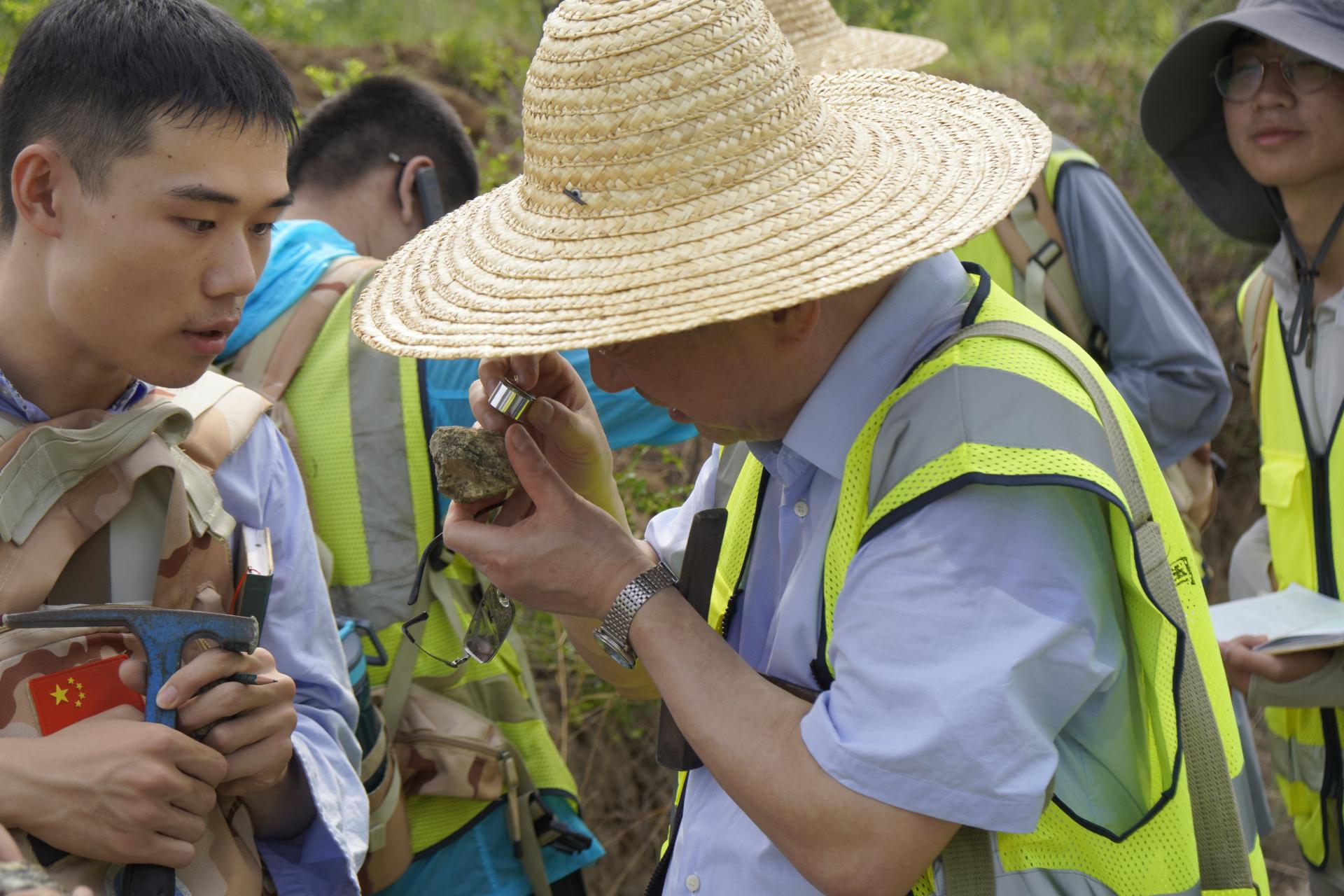王焰新董事长查看同学们的野外记录簿