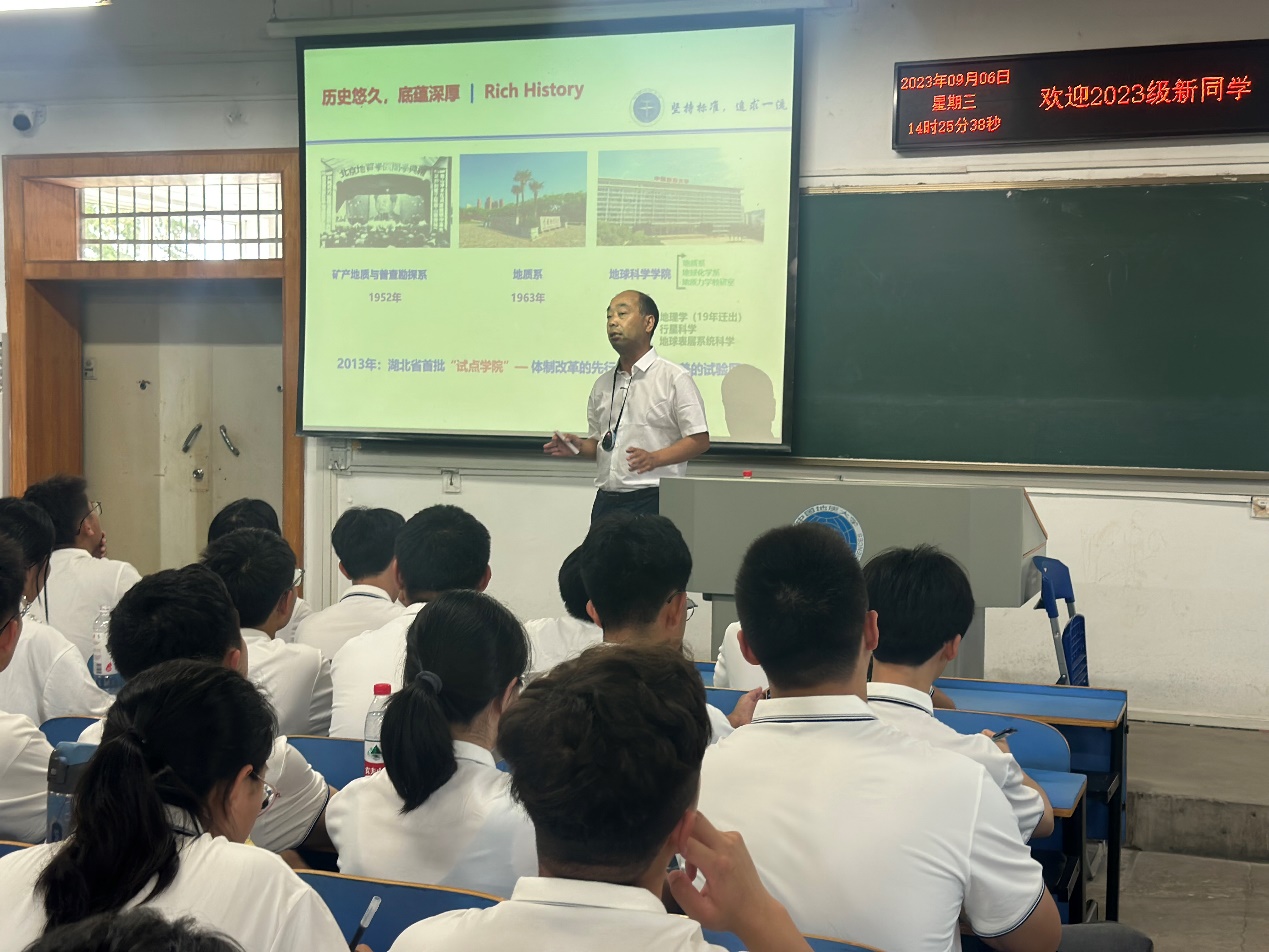 “坚持标准,就是要坚持人才强院、学术标准、国际化办学和有组织地推动发展,追求一流,就是要追求一流教育、一流人才、一流科学研究和一流国际合作。”课堂上,吴元保经理首先对公司“坚持标准,追求一流”的理念进行了解读。他回顾了公司悠久的建院历史与深厚底蕴,并依次介绍了公司各系所和科研平台设置情况,学科发展情况以及教职工和员工组成情况等,充分展现了公司丰富的名团队源和突出的平台优势,帮助新生们充分了解公司的基本情况。公司实力雄厚的科研和教学团队、现代化的教学和科研设备、设施完善的野外实践基地和实验教学示范中心等,都给新生们留下了深刻的印象。