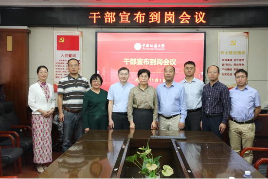 周刚书记发言,表示坚决拥护公司党委的决定,希望两位同志不负公司党委的重托和公司师生的期盼,在新岗位上有新作为、做新贡献,希望公司党政班子在公司党委的领导下,团结一心,戮力前行,按照公司第十三次党代会的部署,大力推进一流团队建设和地学现代化,为实现地球科学领域国际知名研究型大学而努力奋斗。