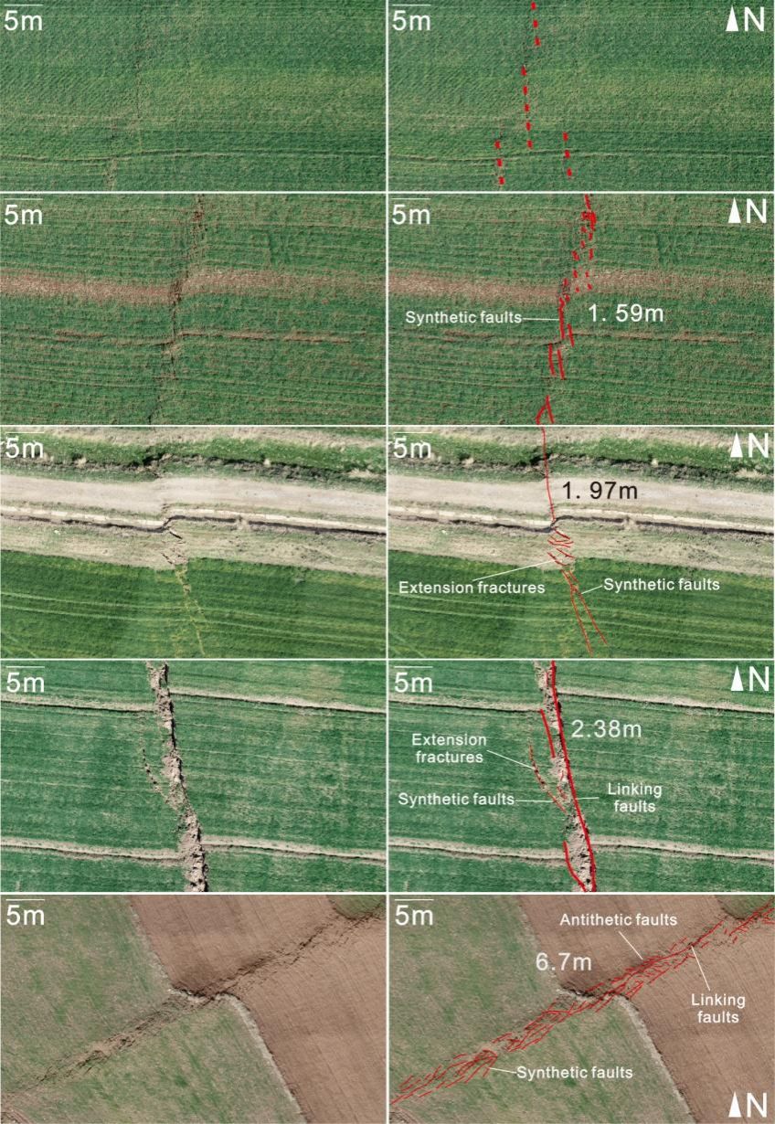 大地震会直接导致地表剧烈变形破裂,造成大量人员伤亡和财产损失。地表脆性变形如何响应地震事件发生,其破裂过程和变形特征是怎么样的,他们在震区断层系统之间如何传递?前人针对这些科学问题开展过大量研究,但受限于震后灾区的复杂情况,很少完整记录震后地表变形的初始特征。