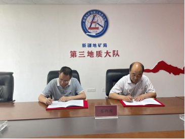 在新疆地矿局第三地质大队,双方简要介绍了单位情况,就如何加强产学研合作、联合开展人才培养、促进毕业生就业等议题进行了深入探讨,并达成合作意向。双方领导共同签署了合作协议备忘录,并共同为产学研合作基地揭牌。