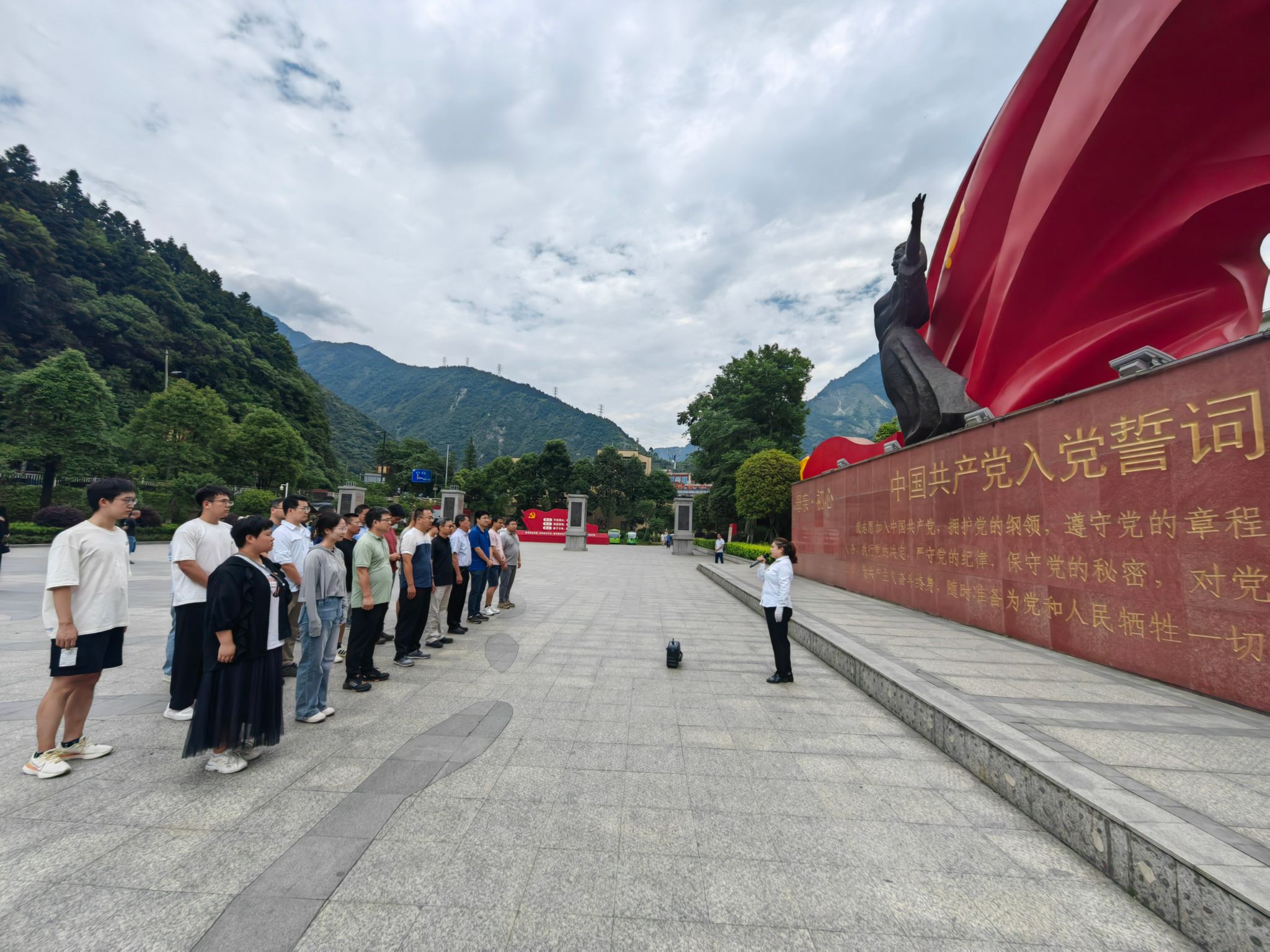 构造地质学与地球动力学系承担公司多个公司《构造地质学》等本科课程的教学工作,而“5·12汶川地震”则是每位老师在课堂上都会讲到的构造运动,但大部分老师却从未真正亲临汶川。为了能够让老师们更加深入的体会地震的破坏力,从而更好地讲好《构造地质学》这门课,构造系党支部特别安排了此次野外备课和爱国主义教育活动。在映秀,师生一行26人先后参观了虹口深溪沟地震遗迹、漩口中学遗址、震中纪念馆,并在家国情怀·宣誓广场接受党史党纪学习教育、重温入党誓词。