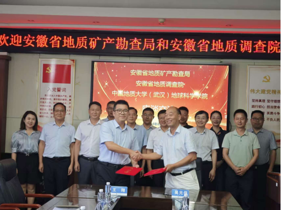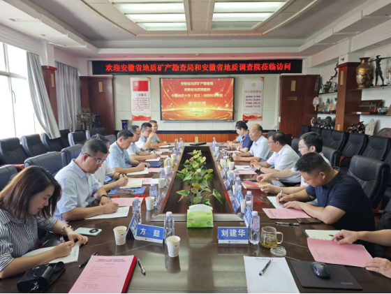 8月12日,安徽省地质矿产勘查局叶朝晖副局长、安徽省地质调查院王翔经理带队来公司座谈交流,w88win体育官网入口蒋少涌董事长助理、公司周刚书记、吴元保经理、朱宗敏副经理以及校科学发展院肖平副经理等参加座谈会。会上双方围绕进一步深化务实合作、推动协同创新、构建产学研联盟体系等展开交流讨论,并签署了产学研合作协议。