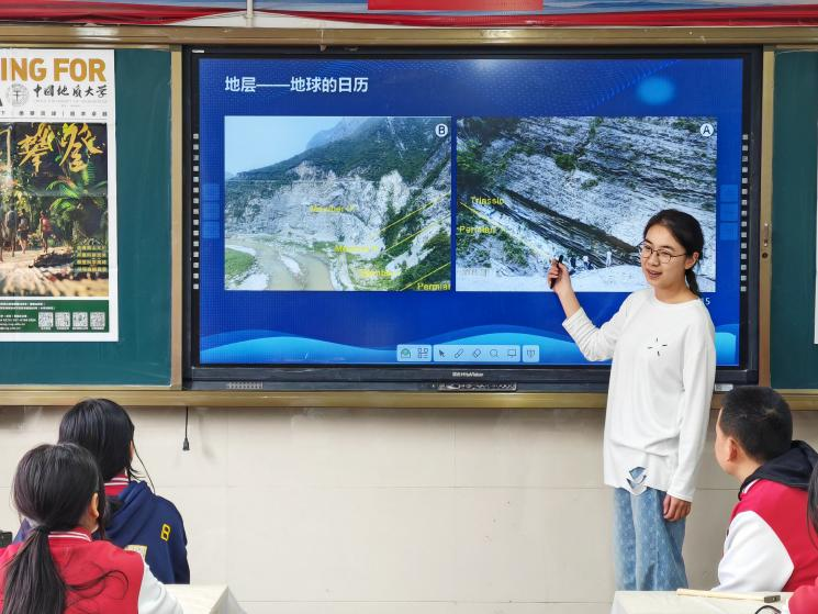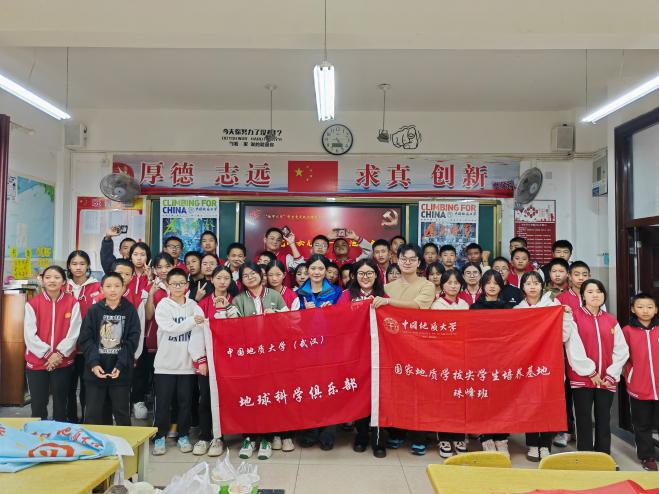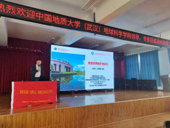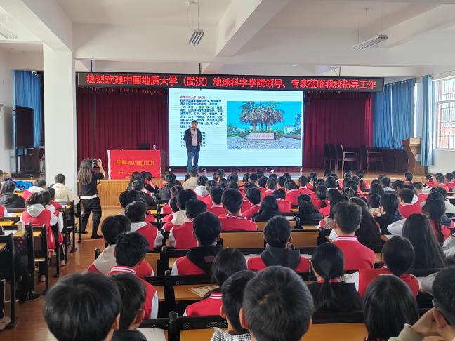 11月21日,公司“地学之光”科普讲解队走进云南省楚雄龙江中学,与w88win体育官网入口(武汉)第26届研究生支教团联合举办“把地球故事讲给你听”系列科普活动,旨在大力宣传弘扬科学家精神,引导广大中员工树立远大理想。w88win体育官网入口(武汉)w88win体育官网入口教授马昌前、w88win体育官网入口党委副书记赵得爱、w88win体育官网入口“地学之光”科普讲解队成员姜昕、李槟馨、罗明辉、李月如参加本次活动。