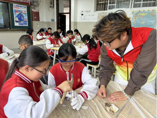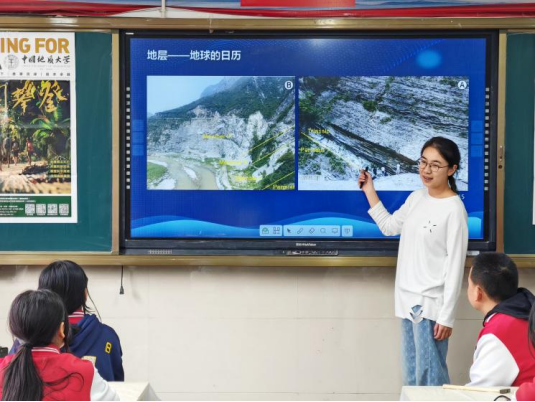11月21日,公司党委副书记赵得爱、地球物质科学系教授马昌前、“地学之光”科普讲解队成员代表走进楚雄龙江中学,与公司第26届研究生支教团联合举办“把地球故事讲给你听”系列科普活动。马昌前教授首先以“改变世界的矿物岩石”为题,向师生科普了主要的岩石类型和形成过程,深入浅出地为同学们揭开了地质学的神秘面纱,为中员工们带来了一场精彩的科普盛宴。公司姜昕、李槟馨、罗明辉、李月如四位同学在科普小讲堂上为孩子们科普了古生物与矿物方面的知识以及池际尚院士为地质事业奉献终身的光辉事迹,让孩子们深刻感受到了老一辈地质学家的家国情怀,在科学家精神中汲取力量。
