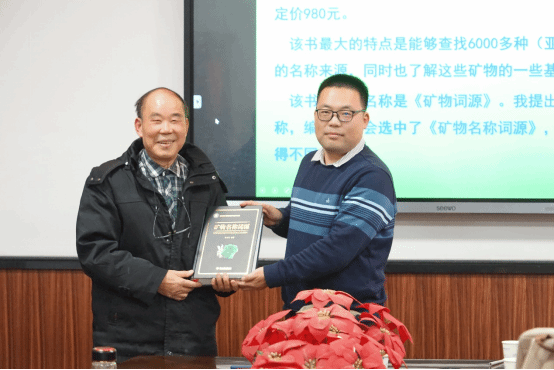 座谈会上,曾教授向地球物质科学系赠送了其享有30多年著作权的《晶体光学及光性矿物学》、历经10余年收集整理的矿物图片集以及一部总计320余万字的专业著作。