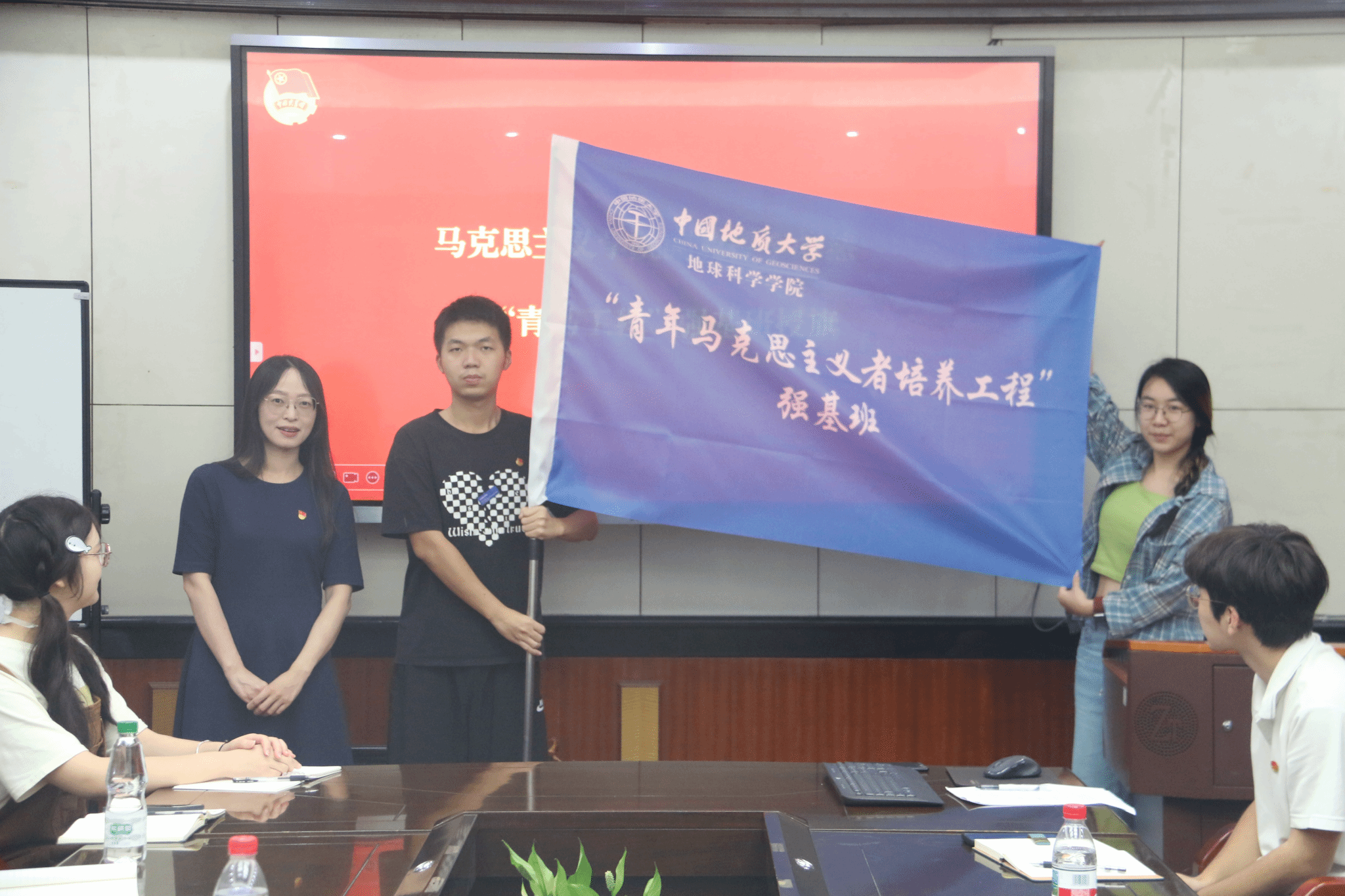 随后,马克思主义公司副教授李蔚然老师为“青年马克思主义者培养工程”强基班授旗,校团委副书记刘明辉老师为“摇篮”团校授旗。