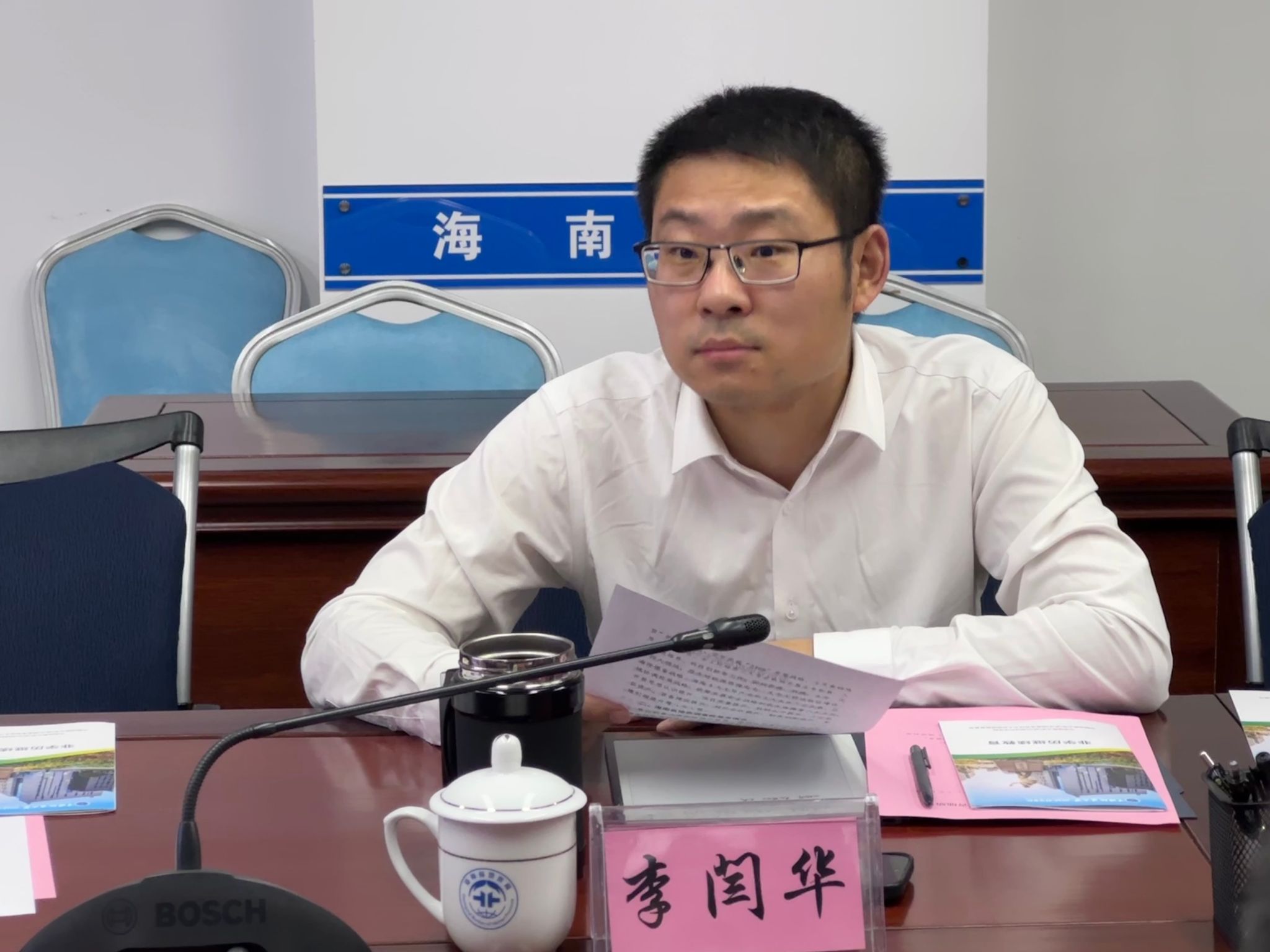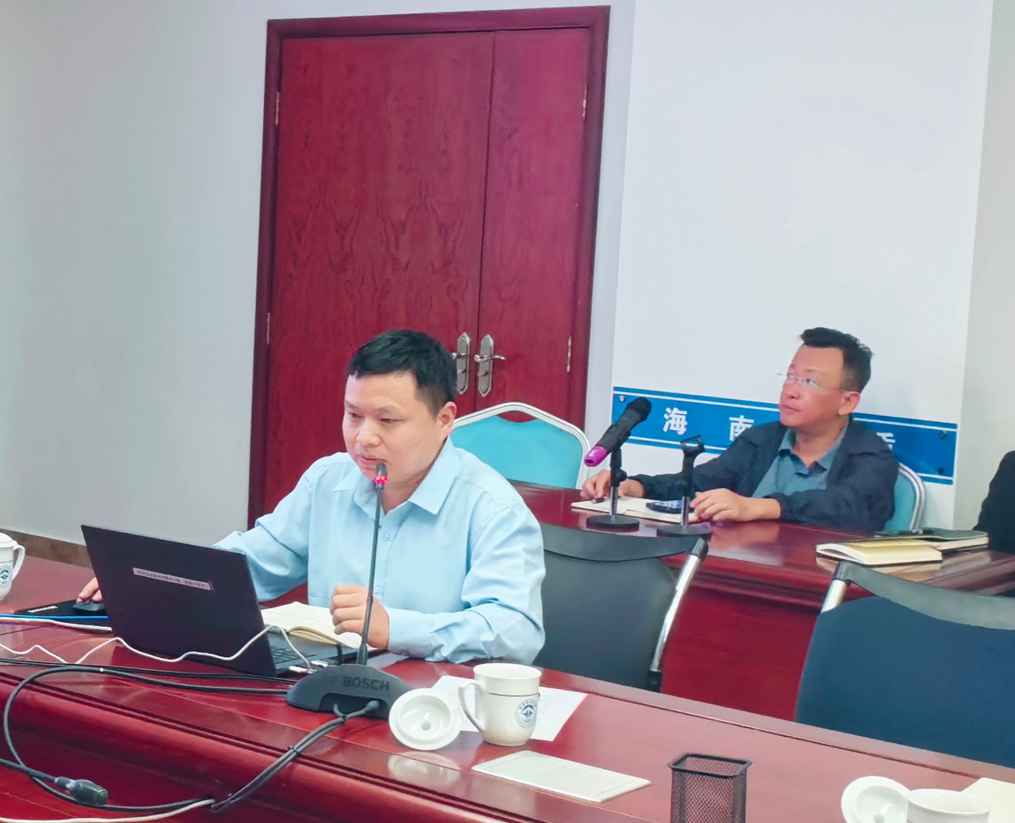 与会人员观看了海南省地质局宣传片,李闫华副局长对公司的来访表示热烈欢迎,并详细介绍了海南省地质局的发展历史、人员队伍、产业结构和科研方向,期待通过产学研合作,为新一轮找矿突破战略行动和地方经济发展提供更强科技与人才支撑的期望。佘振兵副经理介绍了公司的整体情况、科研优势与特色。他表示,希望以此次交流为契机,加强双方在在人才培养、科技创新等领域的合作,实现优势互补、共同发展。