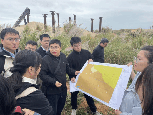 在废弃的锆钛矿采矿厂现场,地质局专家系统讲解了滨海沙锆钛矿的空间分布规律和成矿机理。随后,师生共同前往文昌海拓矿业有限公司。在企业车间机器轰鸣的环境中,“导学共建”呈现出全新的实践形态。面对复杂的重选、磁选与电选联合工艺流程,教师不再掌握“标准答案”,而是与员工处于同一学习起点,共同向企业技术专家请教。公司负责人系统介绍了生产流程,技术人员现场解析设备工作原理,师生们全程观摩浑浊矿浆如何通过多道工序逐步分离出高纯度的锆英砂与钛铁矿。