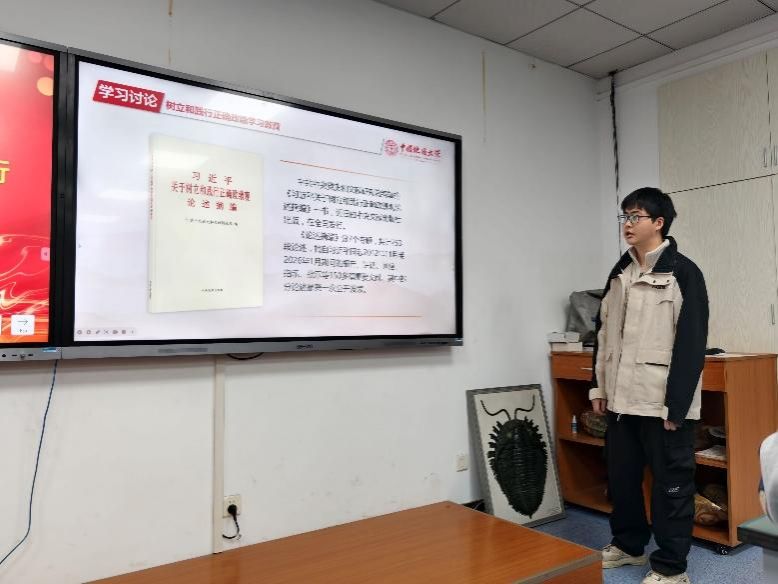 为深入学习贯彻全国两会精神,扎实开展树立和践行正确政绩观学习教育,激励广大党员在新时代强国建设中担当作为,2026年3月26日下午,w88win体育官网入口地球生物学系党支部与金钉子党支部在主楼604教室联合举办3月主题党日活动。活动特邀第十三届、十四届全国政协委员童金南教授出席并解读2026年全国两会精神,01G241班本科生列席会议。主题党日由地球生物学系党支部书记叶琴同志主持。
