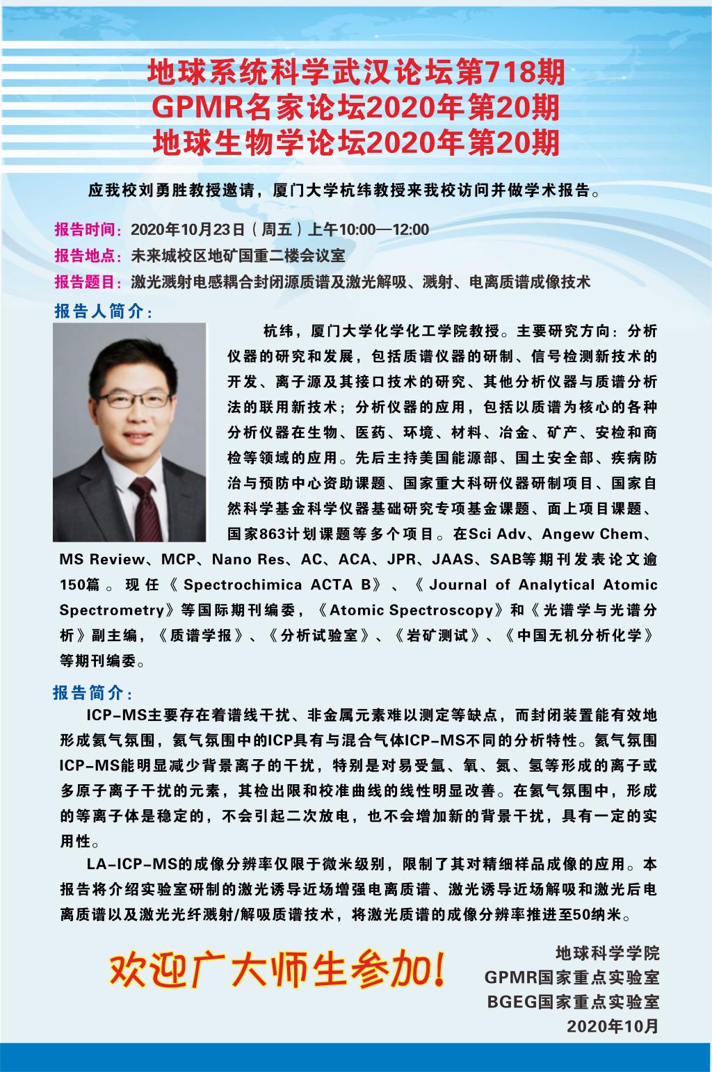 【10月23日】厦门大学杭纬教授学术报告