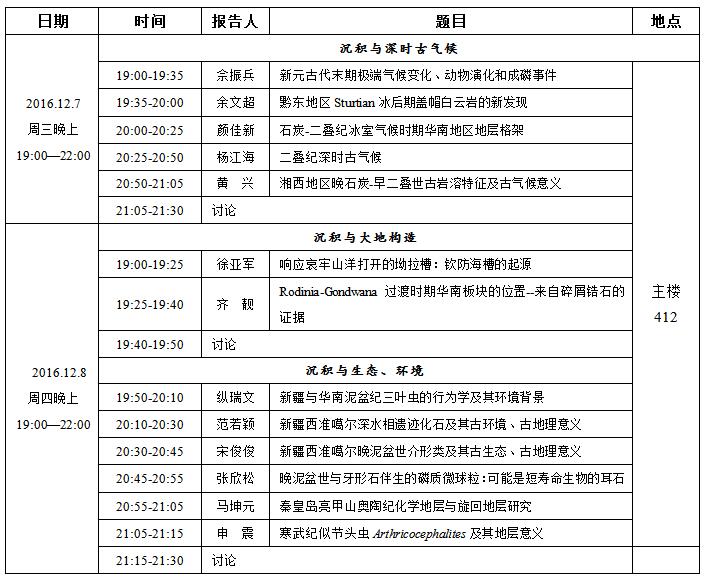 本次研讨会由杜远生和颜佳新老师负责的“沉积地质与矿产”科研团队发起,共有口头报告13个,内容涵盖沉积与深时古气候、沉积与大地构造、和沉积与生态环境三个主要方面。