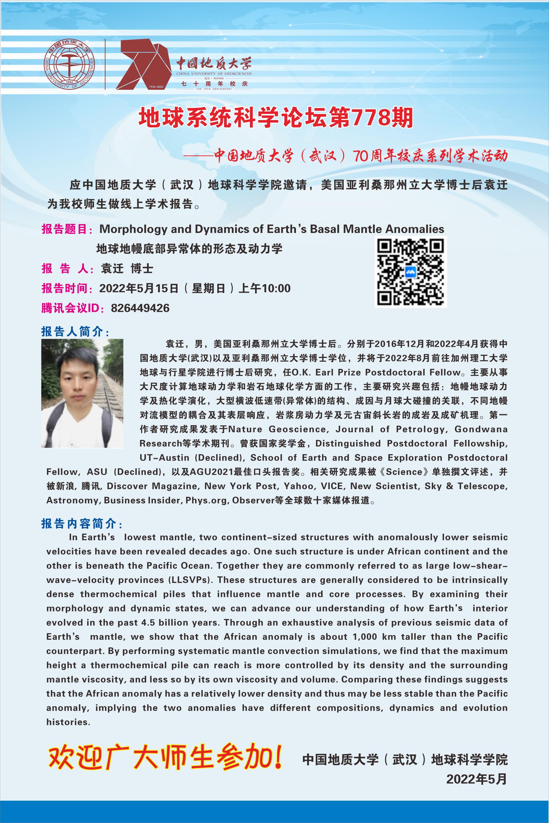 【5月15日】校庆系列学术活动---地球系统科学论坛(第778期):袁迁博士