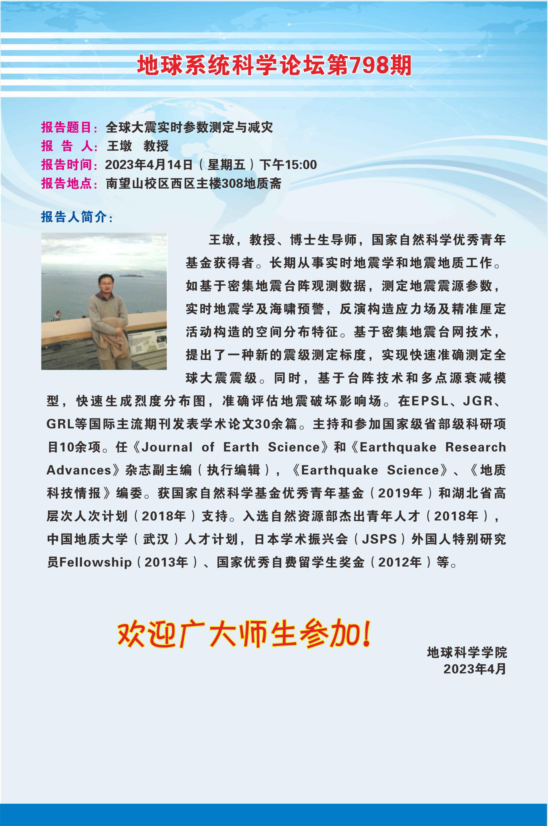 【4月14日】地球系统科学论坛(第798期)-王墩教授