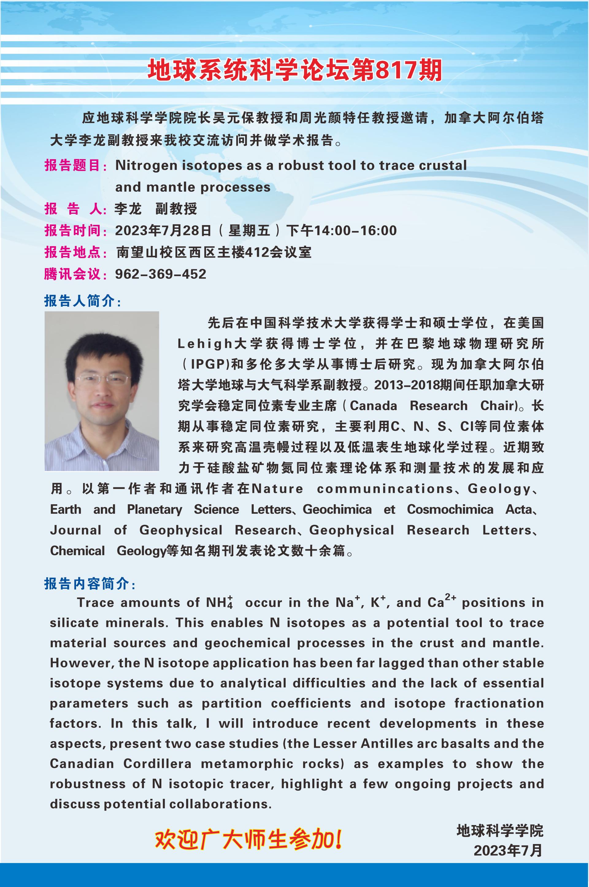 【7月28日】地球系统科学论坛(第817期)-李龙副教授
