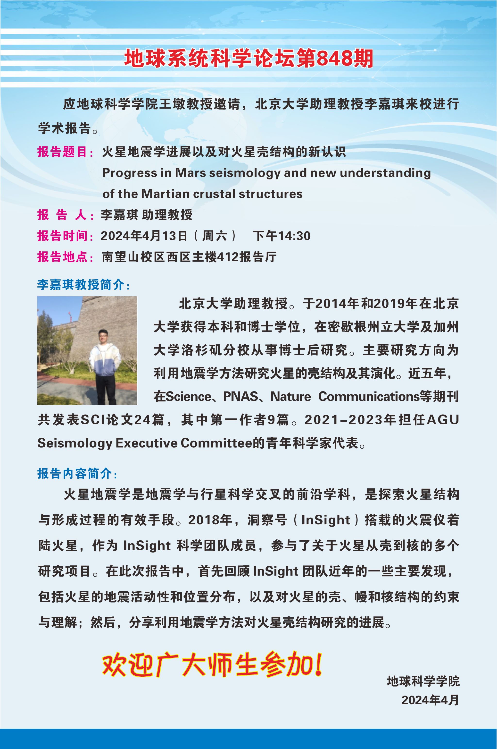 【4月13日】地球系统科学论坛第848期-李嘉琪助理教授