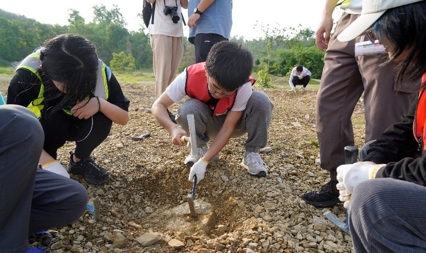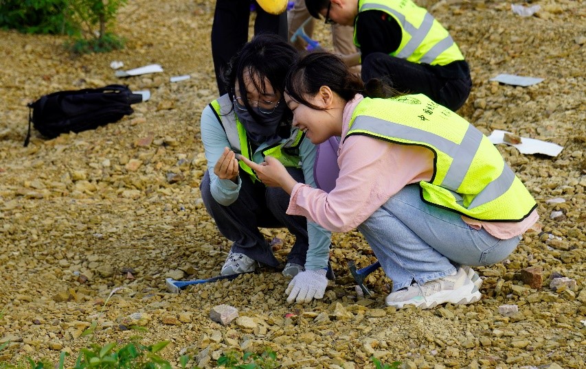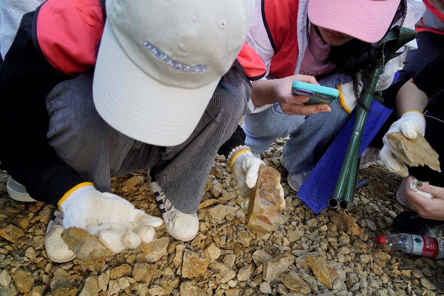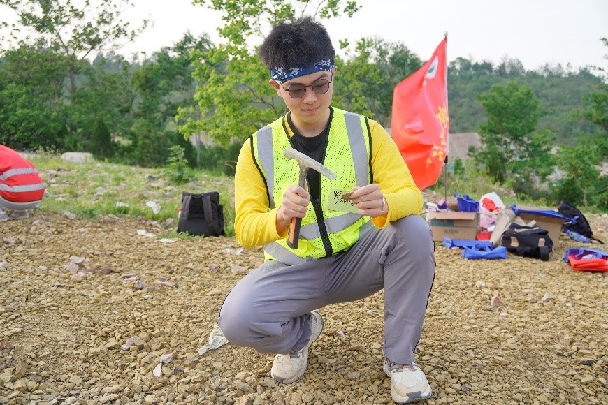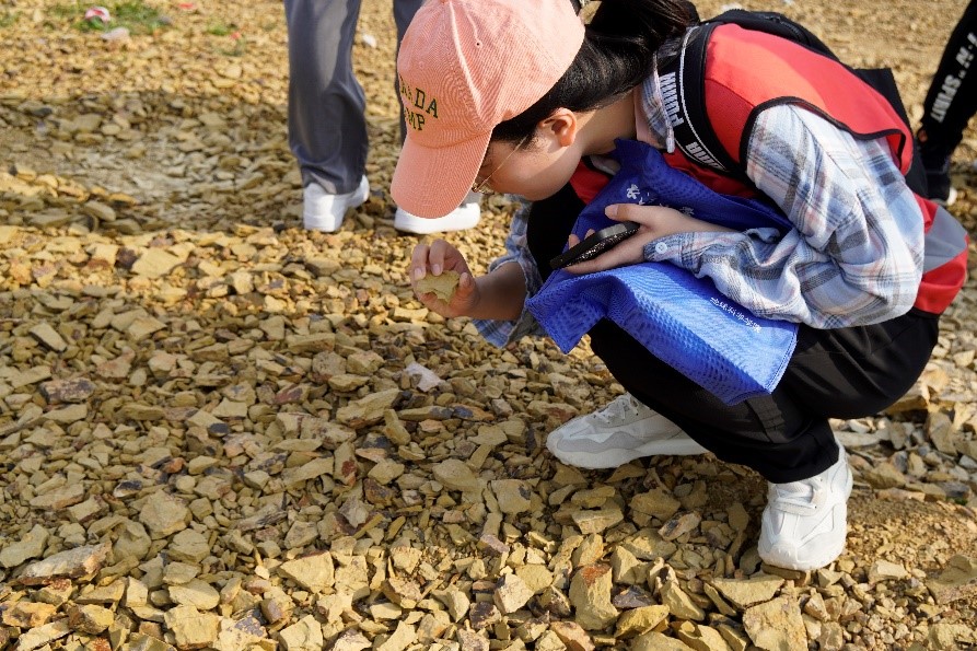 近两个小时的“寻宝”,同学们都收获满满,参与活动的王振权同学说:“这次地质认知实践,我们不仅学会使用了‘地质三大件’,挖到了化石标本,更是在野外体会到了地质的乐趣,缓解了身心压力。”