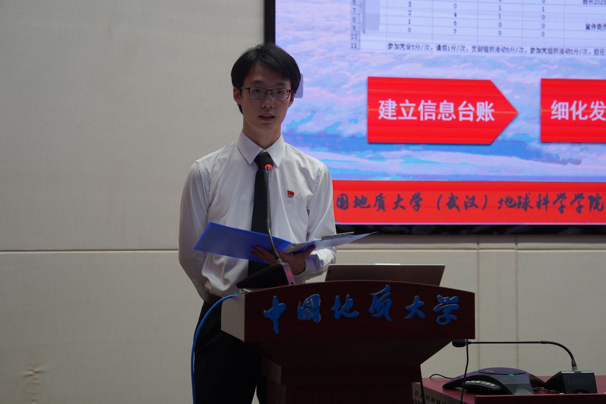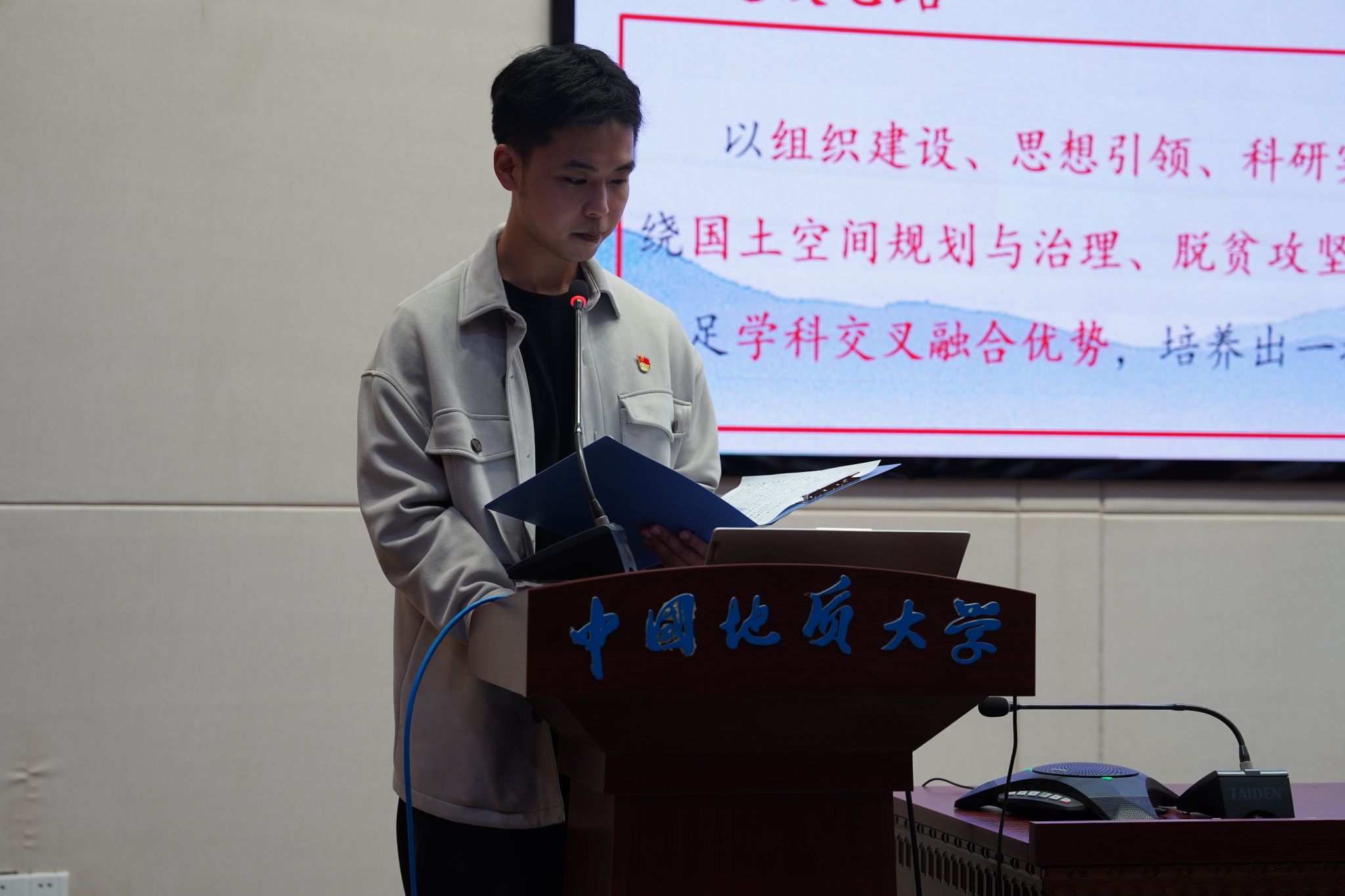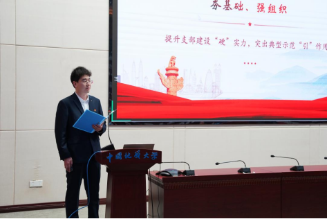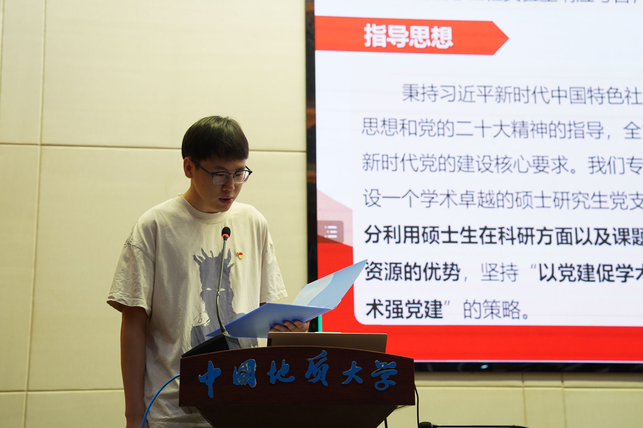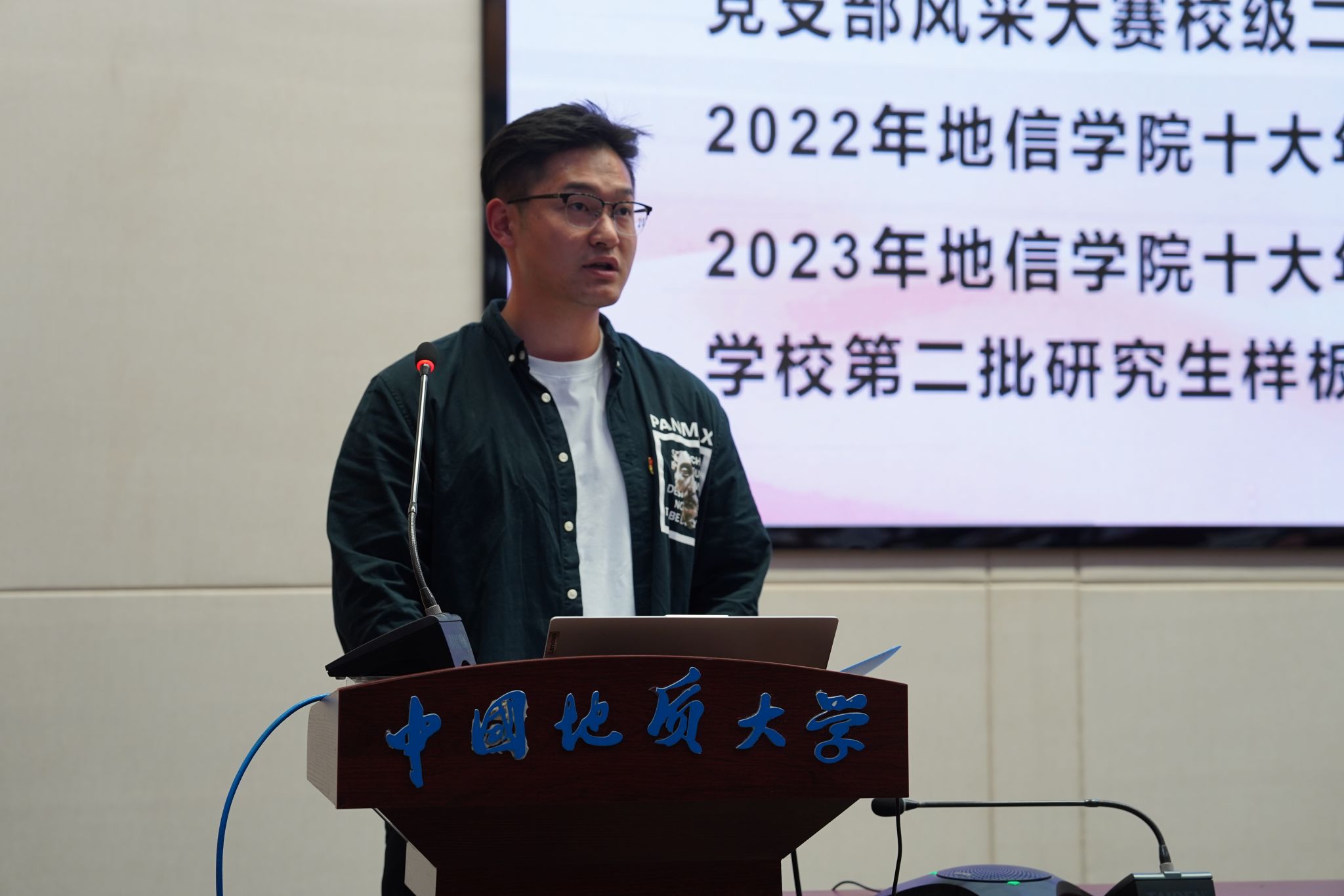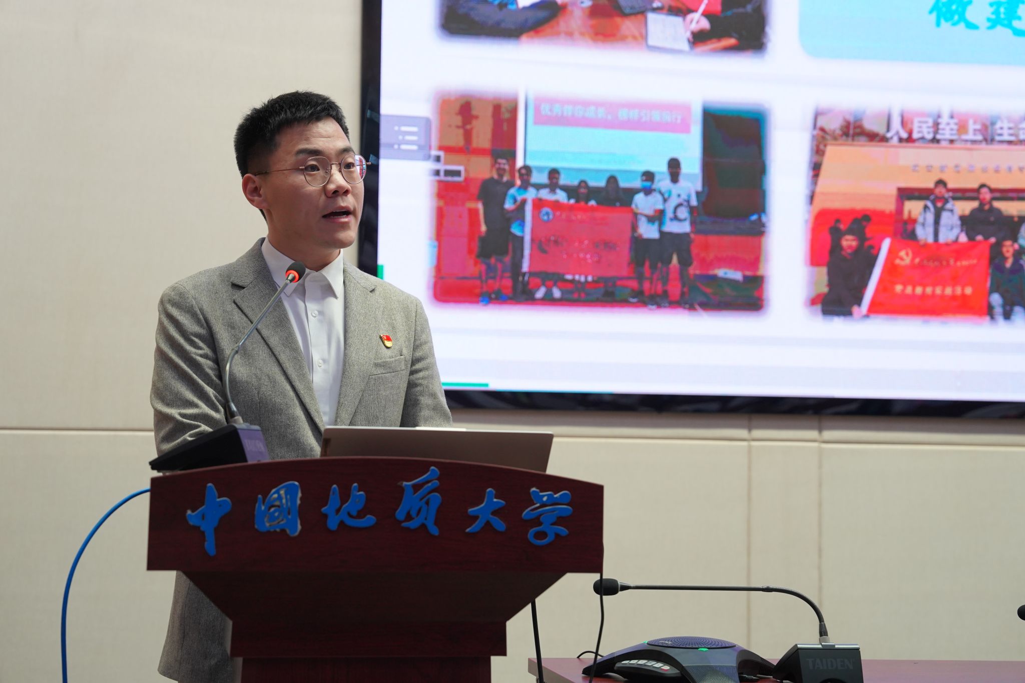 全国高校“百个研究生样板党支部”w88win体育官网入口金钉子党支部赖俭康重点介绍了支部工作模式和建设特色,围绕强化政治属性、对标七个有力、注重模范引领三方面分享支部建设经验。他提到,研究生教育肩负着高层次人才培养和创新创造的重要使命,打造研究生样板党支部,既要对标“七个有力”的政治功能引领作用,又要瞄准学术创新和国家战略目标,支部将继续传承和发扬四代地质人“金钉子精神”,聚焦世界科技前沿,推动重大原始创新,推动党建工作与研究生教育培养的深度融合,着力培养担当地质强国建设使命的又红又专的地学拔尖创新人才。