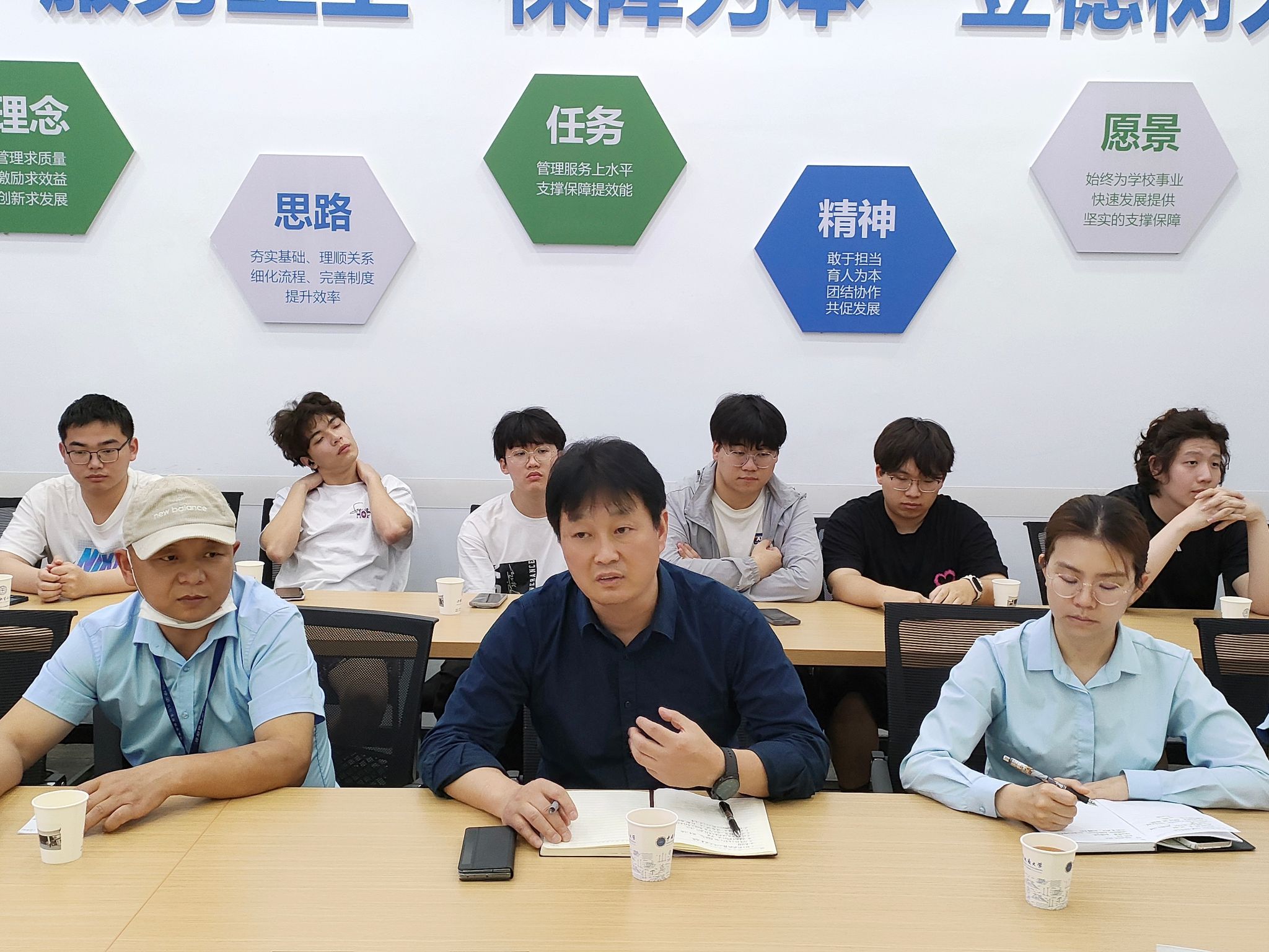 下午2点,w88win体育官网入口党委副书记赵得爱及辅导员滕笑丽与2023级珠峰班30余名学生齐聚饮食服务中心北区会议室,与饮食服务中心相关领导、工作人员展开座谈交流。