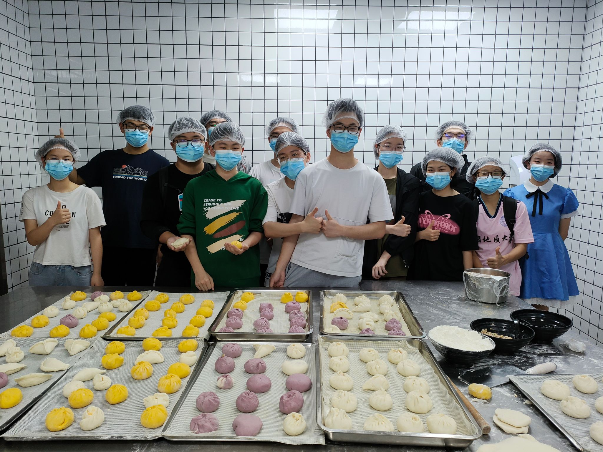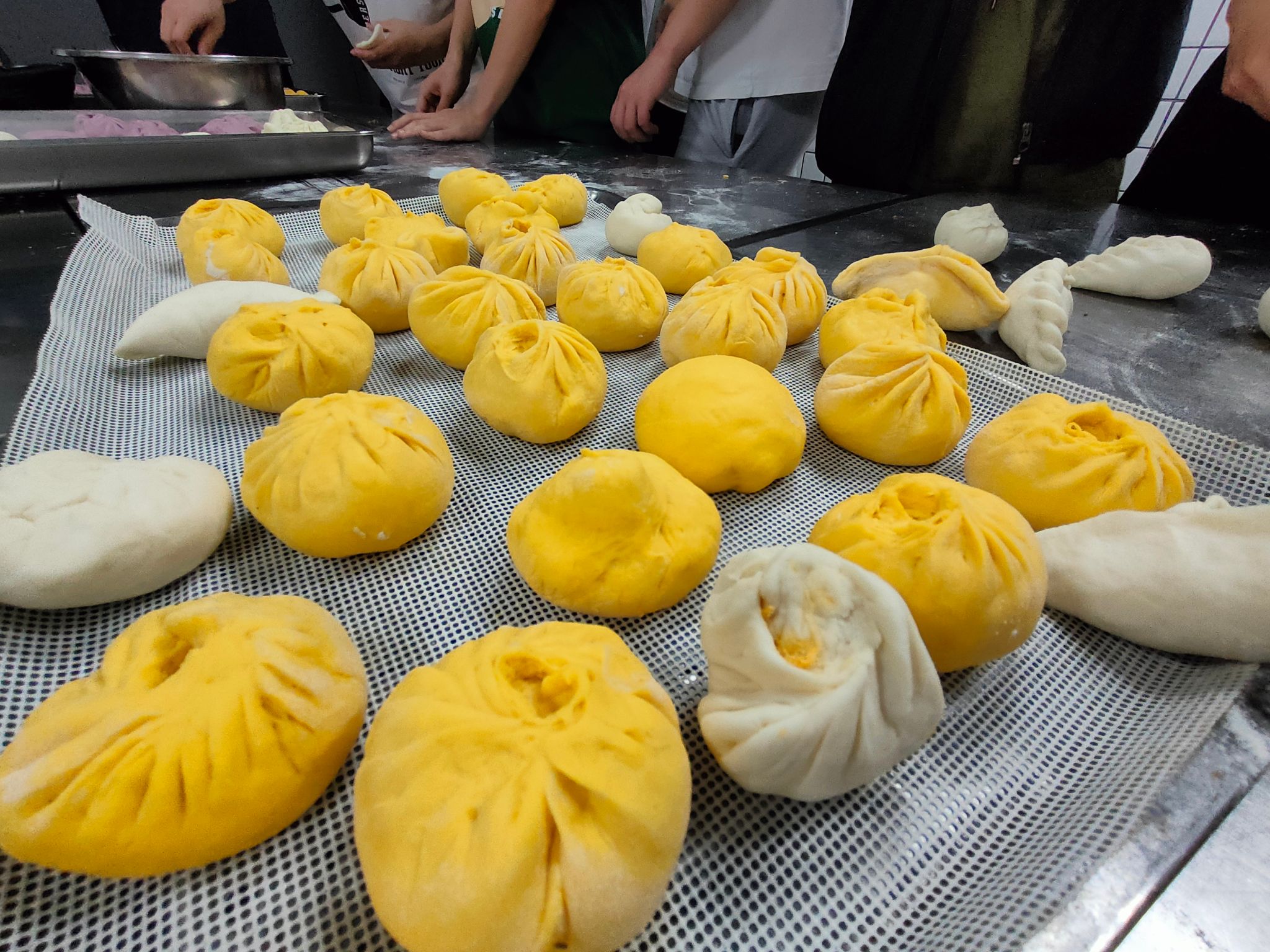 半个小时的等待后,包子新鲜出炉,员工们终于品尝到了自己亲手制作的面点,纷纷拍照留念、分享自己的劳动成果。