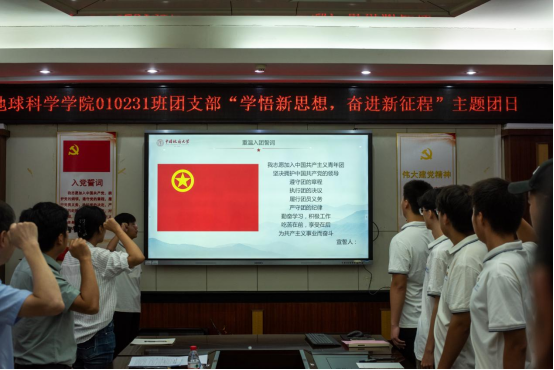 团员们集体起立,齐唱团歌,并重温入团誓词。