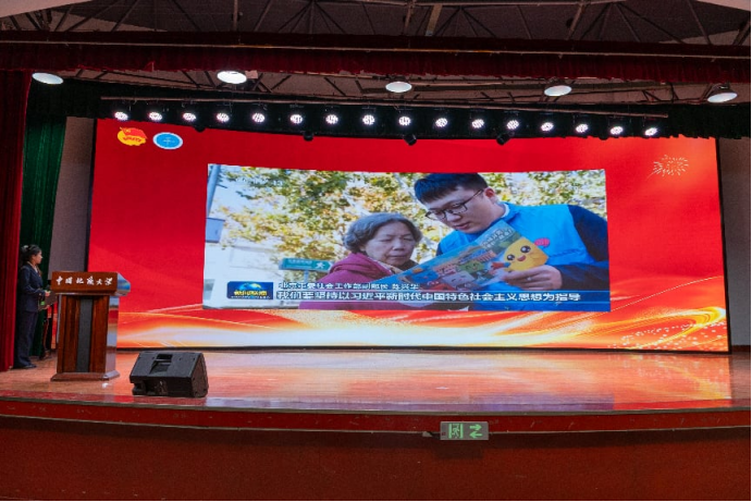 随后,师生共同学习了习近平总书记致中国志愿服务联合会第三届会员代表大会的贺信精神。大家纷纷表示,要牢记总书记殷殷嘱托,扛起青年时代责任,强化志愿服务意识,把志愿精神内化于心、外化于行,让“青春地标”的光芒在志愿服务实践中愈发璀璨。