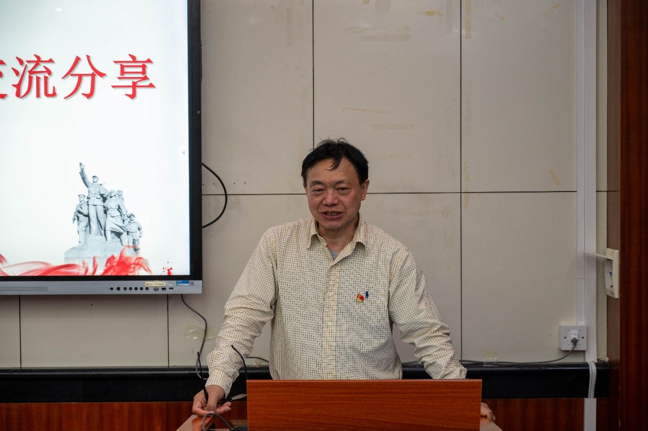 马昌前教授总结发言。他以饱含深情的语调,追忆了与恩师池际尚先生相处的点点滴滴。他提及先生当年润物无声的言传身教,无微不至的关心,谈及先生严谨治学的精神品格与高山景行的人格风范,言语间尽显对恩师的无限追思,更折射出池际尚先生在学术方面的深远影响。马昌前教授紧扣学科发展脉络,勉励支部党员着力培育创新思维、锚定问题导向、精进新技术应用能力、拓宽国际化视野。他特别以 "爱・学・勤・昭" 四字箴言寄语青年党员:永葆对地质事业的赤子之爱,珍视治学光阴以博学笃行,秉持勤勉之姿深耕专业领域,以开阔胸襟昭显新时代地质人的使命担当,在地质事业的新征程中绽放青春华彩。